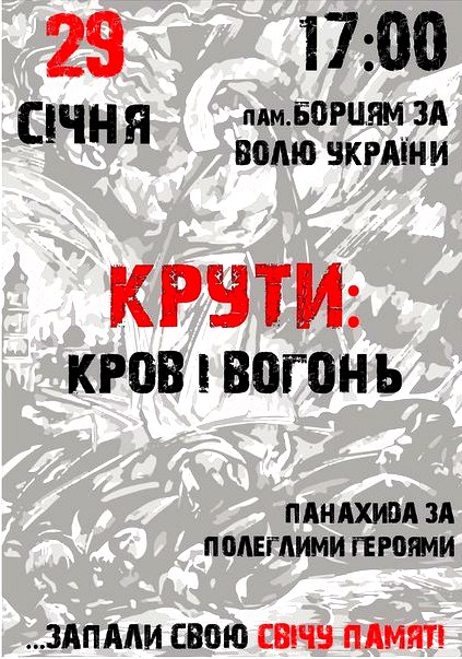 Майже століття тому на жертовник незламної нації поклали свої голови сотні юнаків, відстоюючи українську державність. Сьогодні Крути – це наша дійсність. Та, через яку вмирають і заради якої живуть! Крути – це Небесна Сотня, Іловайськ, донецький аеропорт, це тисячі тих, хто вірно і завзято захищає країну від російського окупанта! Сьогодні, як ніколи боляче пам’ятати подвиг героїв, але й як ніколи разюче у головах і серцях мільйонів українців ця пам’ять скріпляє дух. Наш святий обов’язок – вистояти! Прийди та молись за тих, хто спати не міг. Прийди та молись за тих, хто бореться за Україну вільну і соборну! – закликають організатори акції.