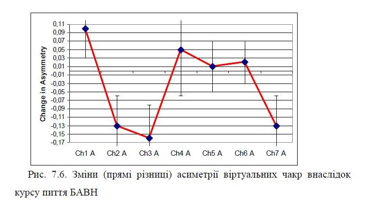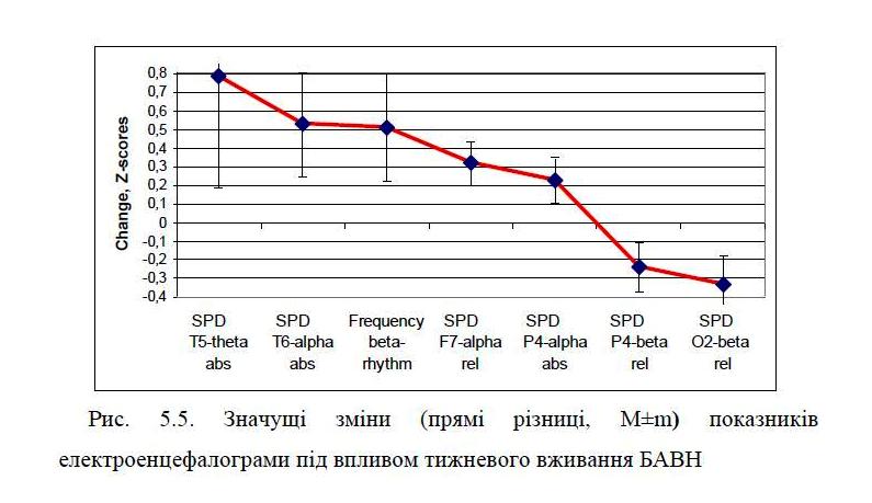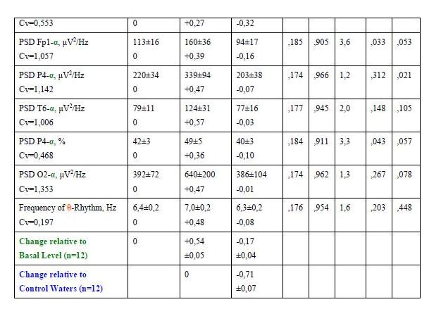 Regarding the parameters of quantitative electroencephalography first discovered normalizing increase initially reduced spectral power density (SPD) α-rhythm in loci T6, P4 and F7, increase in the normal modal frequency β-rhythm and further enhance SPD θ-rhythm in the locus T5. On the other hand, showed a reduction in the initial normal SPD β-rhythm in locus O2 and further reduce its in locus P4. In addition, there was left-sided lateralization initially symmetric α-rhythm.