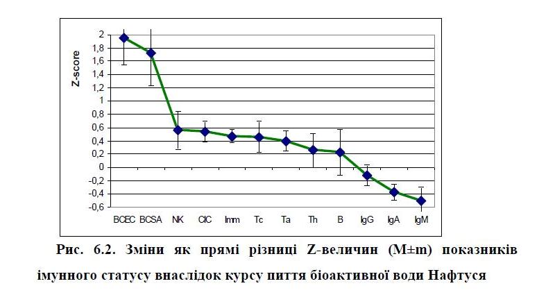 РОЗДІЛ 6. ІМУНОМОДУЛЮЮЧІ ЕФЕКТИ БІОАКТИВНОЇ ВОДИ НАФТУСЯ У ОСІБ З ДИСФУНКЦІЄЮ НЕЙРОЕНДОКРИННО-ІМУННОГО КОМПЛЕКСУ ………………………. 115