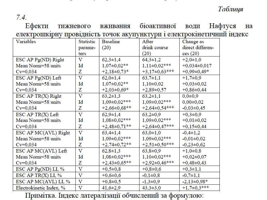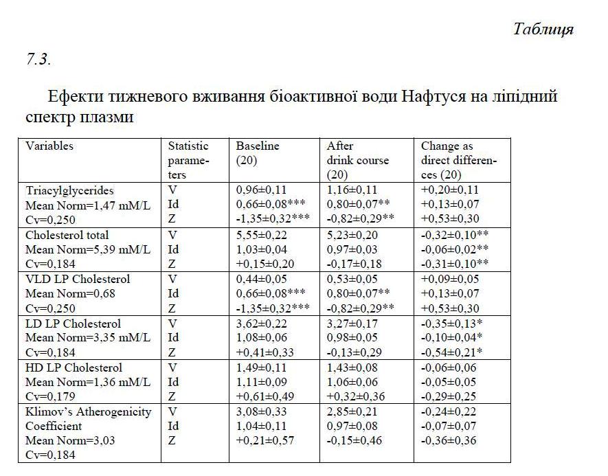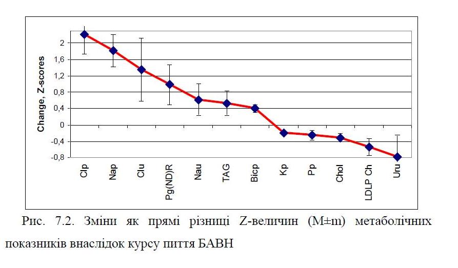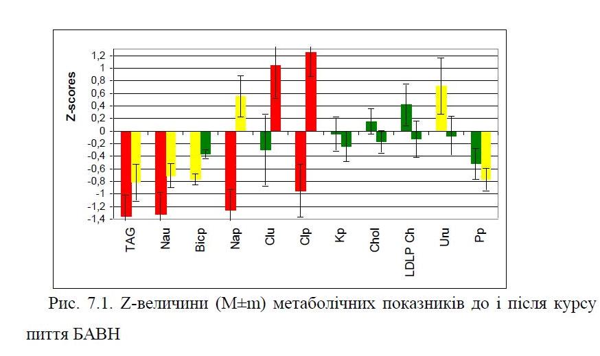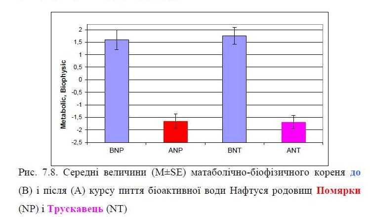 РОЗДІЛ 7. ВПЛИВ БІОАКТИВНОЇ ВОДИ НАФТУСЯ НА ДЕЯКІ МЕТАБОЛІЧНІ І БІОФІЗИЧНІ ПОКАЗНИКИ У ОСІБ З ДИСФУНКЦІЄЮ НЕЙРОЕНДОКРИННО-ІМУННОГО КОМПЛЕКСУ ………………………………………………………….. 125