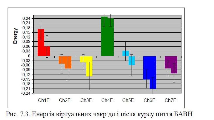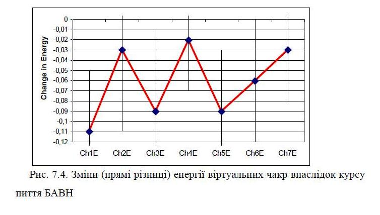 Among the biophysical parameters first detected increase in the normal conductivity acupuncture points Pg(ND) right, which represents the nervous system and increase electrokinetic index of buccal epithelium, indicating the “rejuvenation” of the body. For the first time identified changes in gas discharge visualization parameters, namely the elimination of asymmetries virtual chakras (second, third and first) and reducing excess energy of the first chakra.
