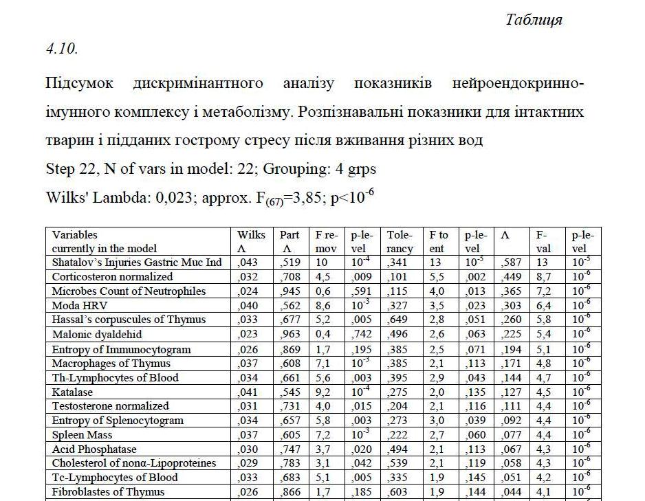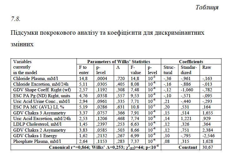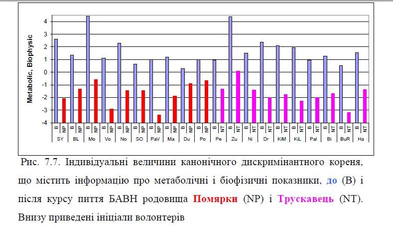 225. Kozyavkina O.V., Vis’tak H.I., Popovych I.L. Factor, canonical and discriminant analysis of vegetotropic effects and accompanying changes for thyroide, metabolic and haemodynamic parameters at the women, caused by bioactive water Naftussya // Medichna gіdrologіja ta reabіlіtacіja.-2013.-11, #3.-S. 4-28.