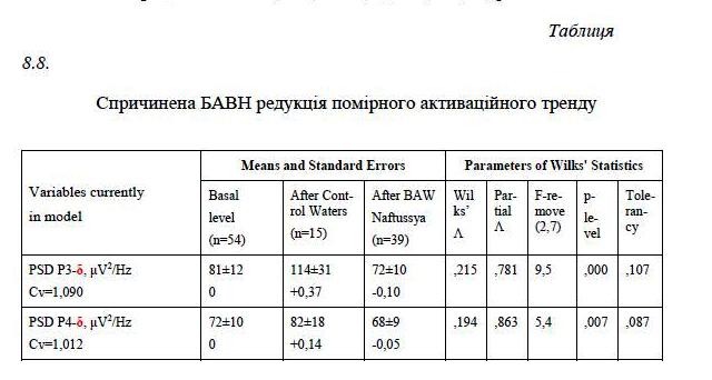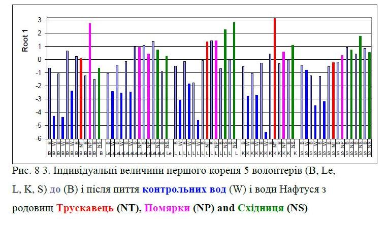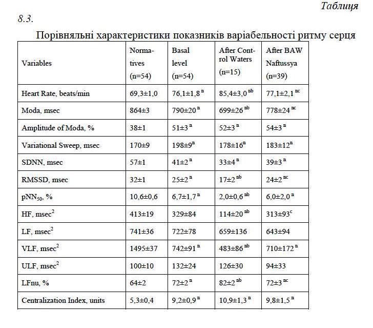 No significant differences between the effects water Naftussya both deposits were found.