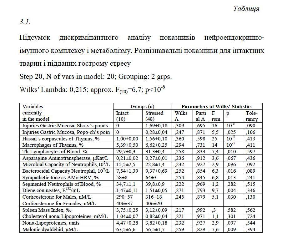 РОЗДІЛ 3. ПАТОГЕННІ І САНОГЕННІ ЗМІНИ НЕЙРОЕНДОКРИННО-ІМУННОГО КОМПЛЕКСУ І МЕТАБОЛІЗМУ, ВИКЛИКАНІ ГОСТРИМ СТРЕСОМ ………..… 71