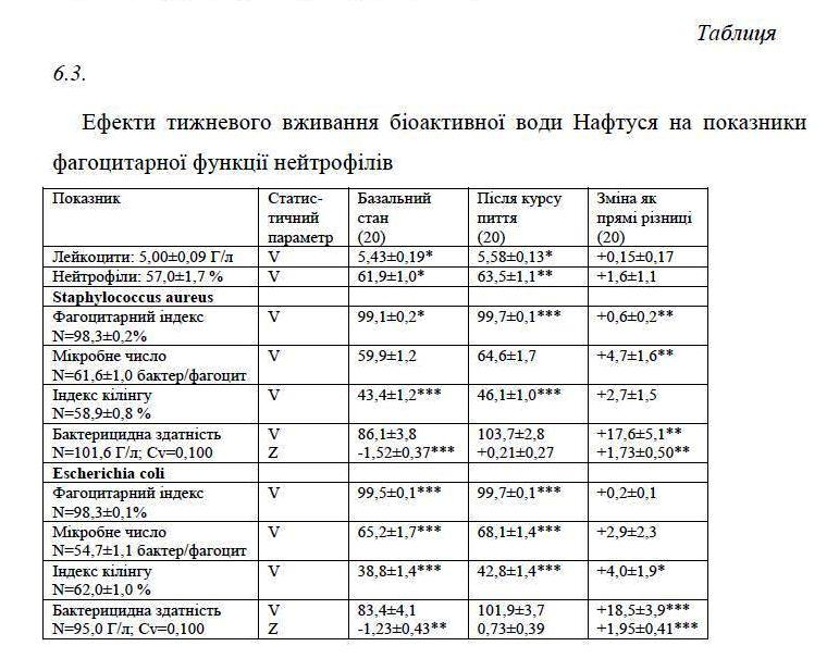 Мінеральні води є важливою складовою санаторно-курортного лікування та базуються на саногенних ефектах їх дії [Попович І.Л. та ін., 2003]. Поміж всіх мінеральних вод особливим механізмом володіють води типу Нафтуся завдяки їх органічному і мікробному компоненту. За багаторічну історію використання Нафтусі встановлено наявність специфічних патофізіологічних ефектів, в першу чергу на жовчовидільну та сечовидільну системи [Есипенко Б.Е., 1981; Яременко М.С. и др., 1989; Чебаненко О.І. та ін., 1997,1997а]. Але в останні роки розширені показання щодо використання Нафтусі та її аналогів [Івасівка С.В. та ін., 2007; Попович І.Л., 2011].