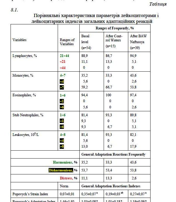 РОЗДІЛ 8. ТЕРМІНОВІ ЕФЕКТИ БІОАКТИВНОЇ ВОДИ НАФТУСЯ НА НЕЙРОЕДОКРИННО-ІМУННИЙ КОМПЛЕКС У ОСІБ З ЙОГО ДИСФУНКЦІЄЮ ……………………………………. 139