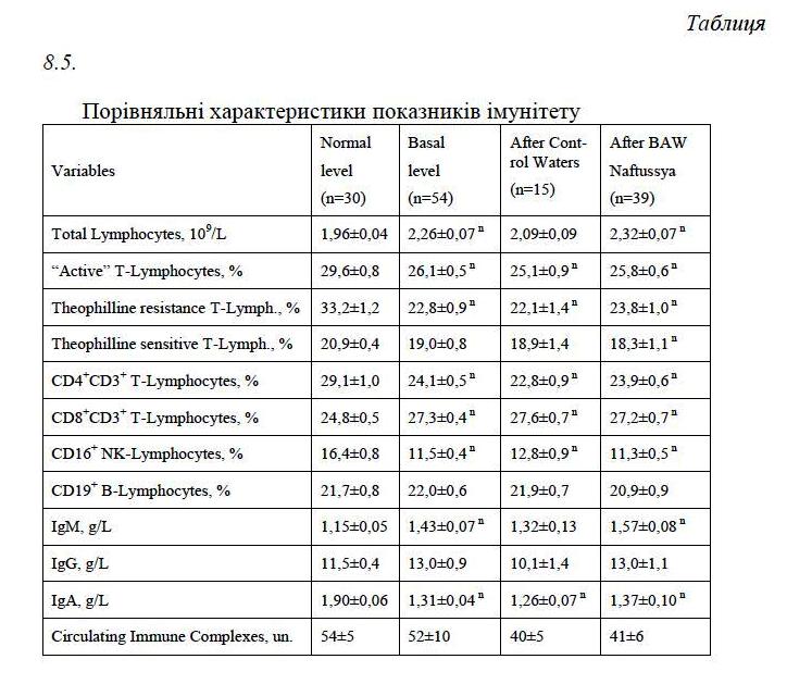 Regarding the immune status for the first time found that Naftussya significantly increases to normal the reduced options phagocytosis by neutrophils of blood as gram-positive and gram-negative bacteria. This increased initially normal levels of T-killers and “active” T-lymphocytes, normalized reduced levels of circulating immune complexes and increased levels of immunoglobulins M and A, and elevated levels of natural killer cells to continue growing. In general, the effect on the neuroendocrine-immune complex is physiologically favorable.