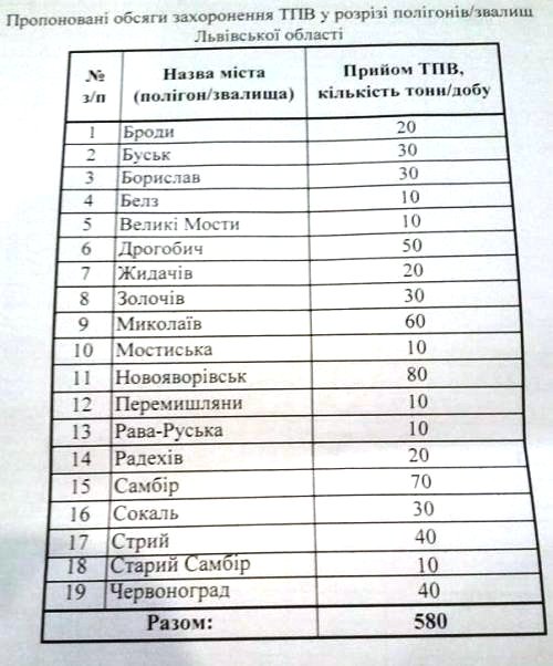 Загалом полігони ТПВ на території області зможуть приймати щодня 580 тонн сміття. За даними львівської мерії, щодня Львів продукує 500-600 тонн сміття.