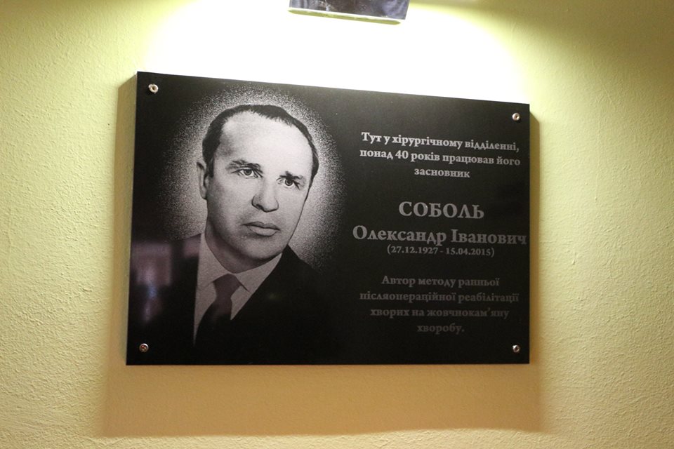 Пам’ятна дошка знаходиться на другому поверсі лікарні у хірургічному відділенні.