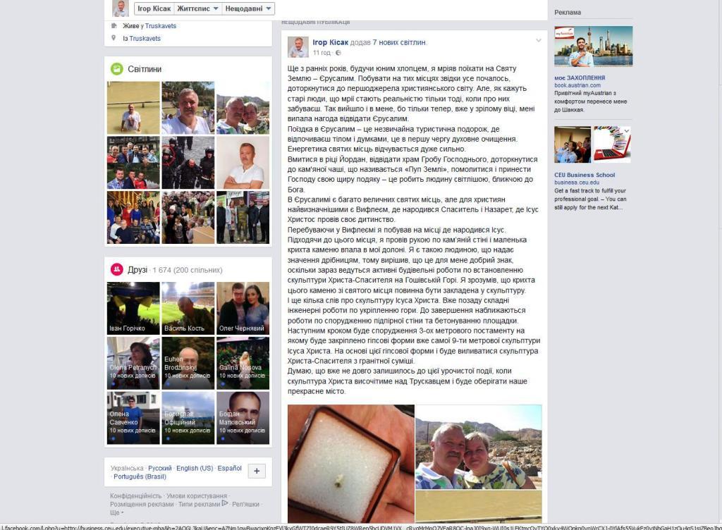 Про це на своїй сторінці в мережі Фейсбук повідомив громадський діяч Ігор Кісак, який зараз перебуває на Святій Землі. Нижче подаємо запис пана Ігоря повністю.