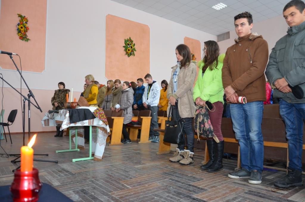 «Голодомор – найчорніший час між часами в історії України. Голод випав на долю народу найродючішої і найбагатшої землі. 10 мільйонів українців винищено на території Східної та Центральної України. Хто зараз живе у їхніх домівках; порядкує на їхніх подвір’ях? Чи це – українці? Голодомор – це повільна і мученицька смерть; він забирає у людини розум, життя і надію, отруює душу… Хай у ці дні пам’яті у кожному місті та селі, у кожній оселі, в кожній родині старий і малий схилить голову перед пам’яттю невинно убієнних голодом-геноцидом; поставить свічку перед образом Божим і помовчить… Нехай ця хвилина мовчання увійде у наші серця тихою молитвою, очистить наші душі від зла, ненависті, цинізму», – цей заклик вустами Ольги Федчак, класного керівника групи 42-ОР посіяв глибокий сум у душах ліцеїстів. Учні підвелися і хвилиною мовчання вшанували пам’ять жертв геноциду.