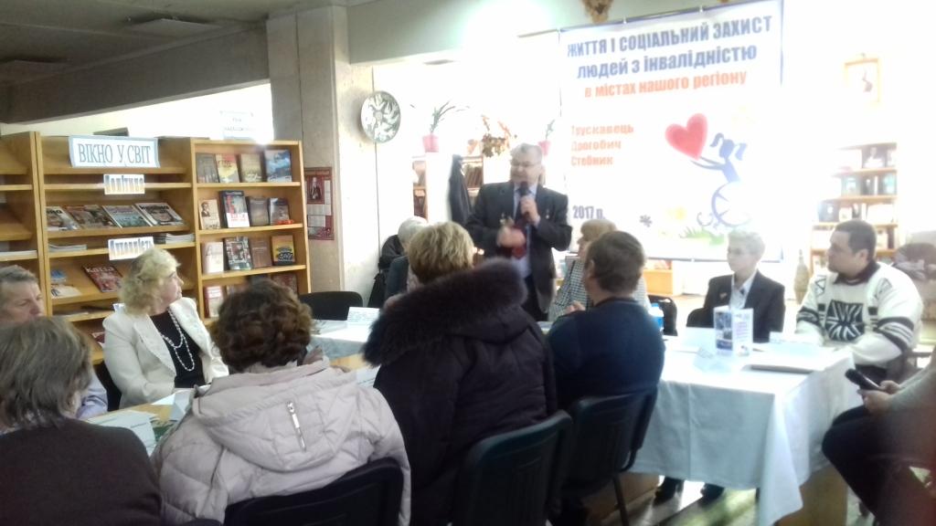 Сьогодні, 24 листопада, у центральній міській бібліотеці Трускавця відбувся круглий стіл на тему “Життя і соціальний захист людей з інвалідністю в містах нашого регіону”. Участь в заході взяли представники влади міст Трускавця та Стебника, асоціацій інвалідів, громадські діячі, доброчинці. Метою зустрічі було визначення проблем людей з обмеженими можливостями і шляхи їх подолання на місцевому рівні.