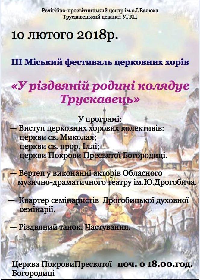 У Трускавці пройде фестиваль церковних хорів “У різдвяній родині колядує Трускавець”