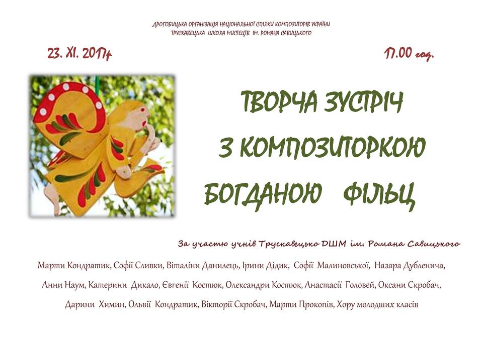 У Трускавці пройде творча зустріч з композиторкою Богданою Фільц
