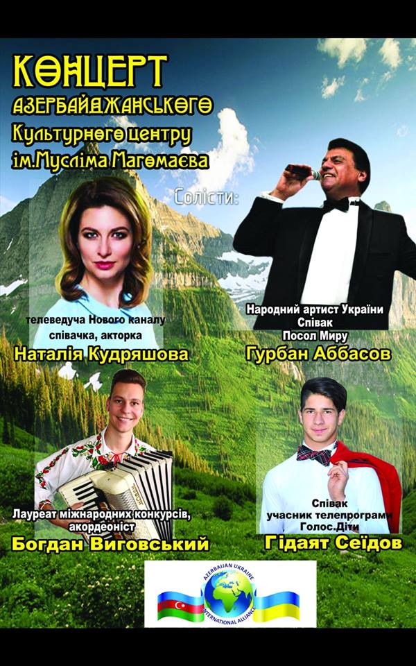 20-22 грудня у Трускавці пройдуть концерти Азербайджанського культурного центру імені Мусліма Магомаєва. Так, великий концерт телеведучої супер-популярної програми на Новому каналі Наталії Кудряшової та Народного артиста України, співака, який виступав на найкращих оперних сценах світу, Гурбана Аббасова та Азербайджанського культурного центру імені Мусліма Магомаєва проходитиме 20 грудня в ГКК “Карпати”, 21 грудня – в санаторії “Перлина Прикарпаття”, а 22 грудня – у Палаці культури імені Т.Г.Шевченка. Концерти присвячені Дню солідарності азербайджанців світу.