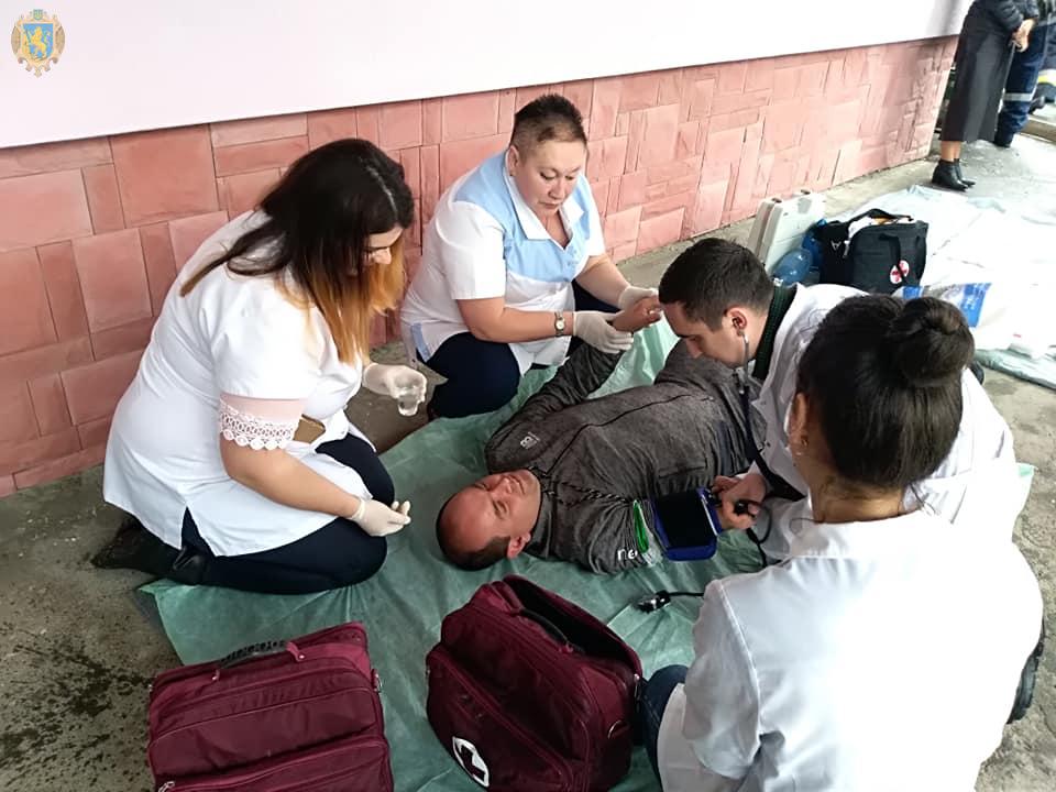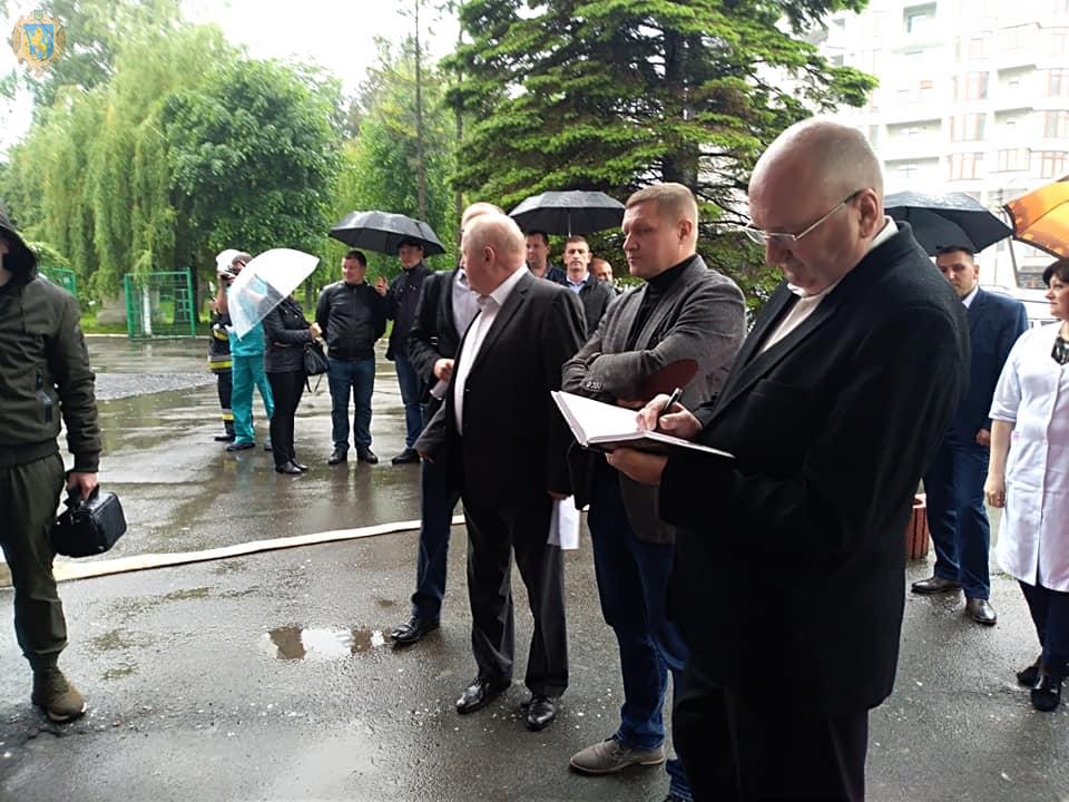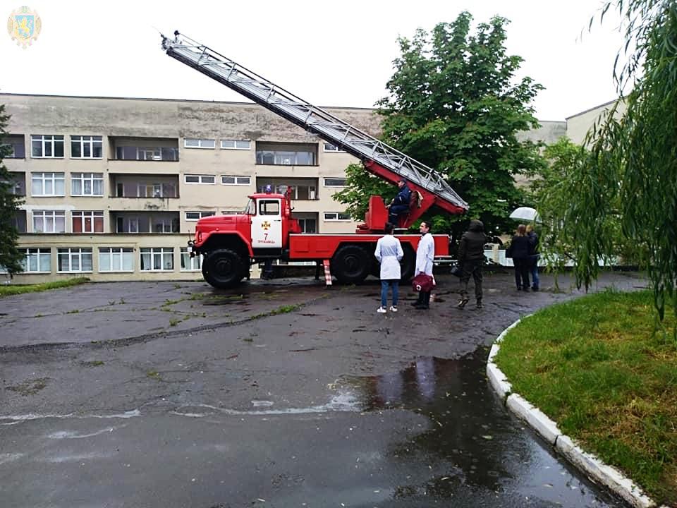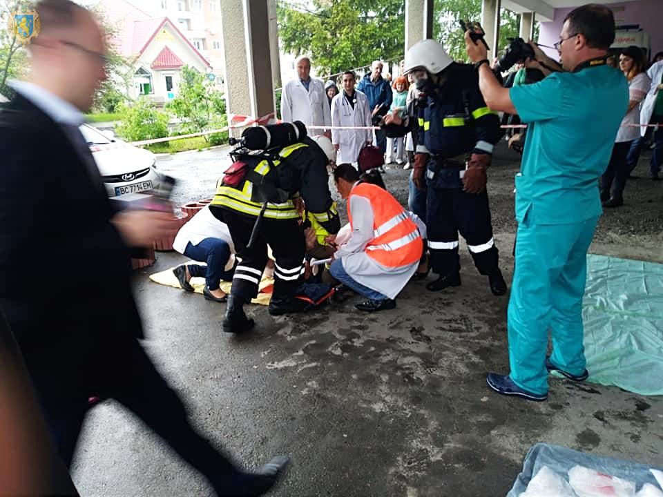 Окрім цього, в комунальному закладі “Трускавецька міська лікарня” проведено об’єктове навчання. За умовами навчання було розгорнуто евакуаційний пункт, рятувальниками проводилась евакуація “постраждалого” з задимленого приміщення 5-го поверху лікарні. Служби діяли чітко та злагоджено.