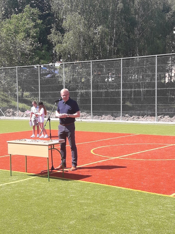 Сьогодні, 13 червня, у Трускавці відбулося урочисте відкриття спортивного майданчика біля НВК «СЗШ №2-гімназія». Участь в заході взяли міський голова Трускавця Андрій Кульчинський, начальник відділу освіти ТМР Орест Лобик, начальник відділу сім`ї, молоді та спорту ТМР Роман Коваль, директор НВК «СЗШ №2-гімназія» Роман Гудзеляк, директор ДЮСК «Спортовець» Любомир Мацькович, представник обласної влади, інші офіційні особи, гості, діти, журналісти.