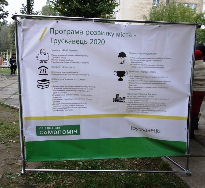 Мешканці Трускавця мають змогу ознайомитись з програмою розвитку «Трускавець-2020». Її зобразили на спеціальних інформаційних стендах, так званих кубах. Вони встановлені у всіх районах міста. Автором програми розвитку є головний претендент на посаду міського голови Трускавця – Андрій Кульчинський. Зазначимо, це єдиний кандидат у мери, який відкрито говорить про свої плани та має чітку програму розвитку. Натомість передвиборчих програм інших кандидатів жителі Трускавця досі не бачили.
