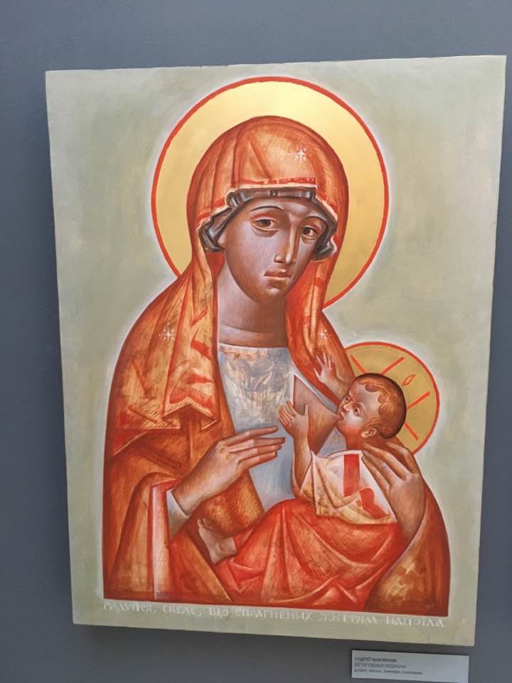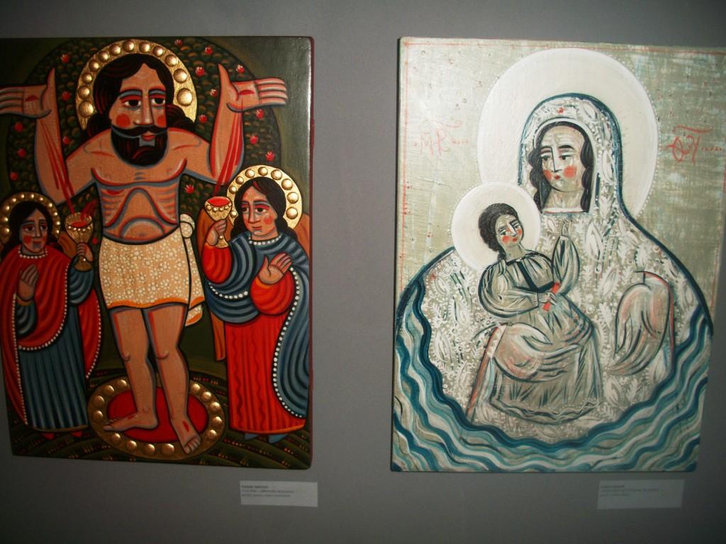 Серед ікон бачимо як образи, виконані у традиційному стилі іконопису, так і дещо незвичні для традиціоналістів. Проте кожна з робіт – це високомистецький твір, безумовно впізнаєш руку майстра. Приємно, що на виставці ікон можна побачити і роботу трускавчанина, настоятеля церкви Покрови Пресвятої Богородиці отця Володимира Бондарчука (ікона «Христос Вседержитель»).