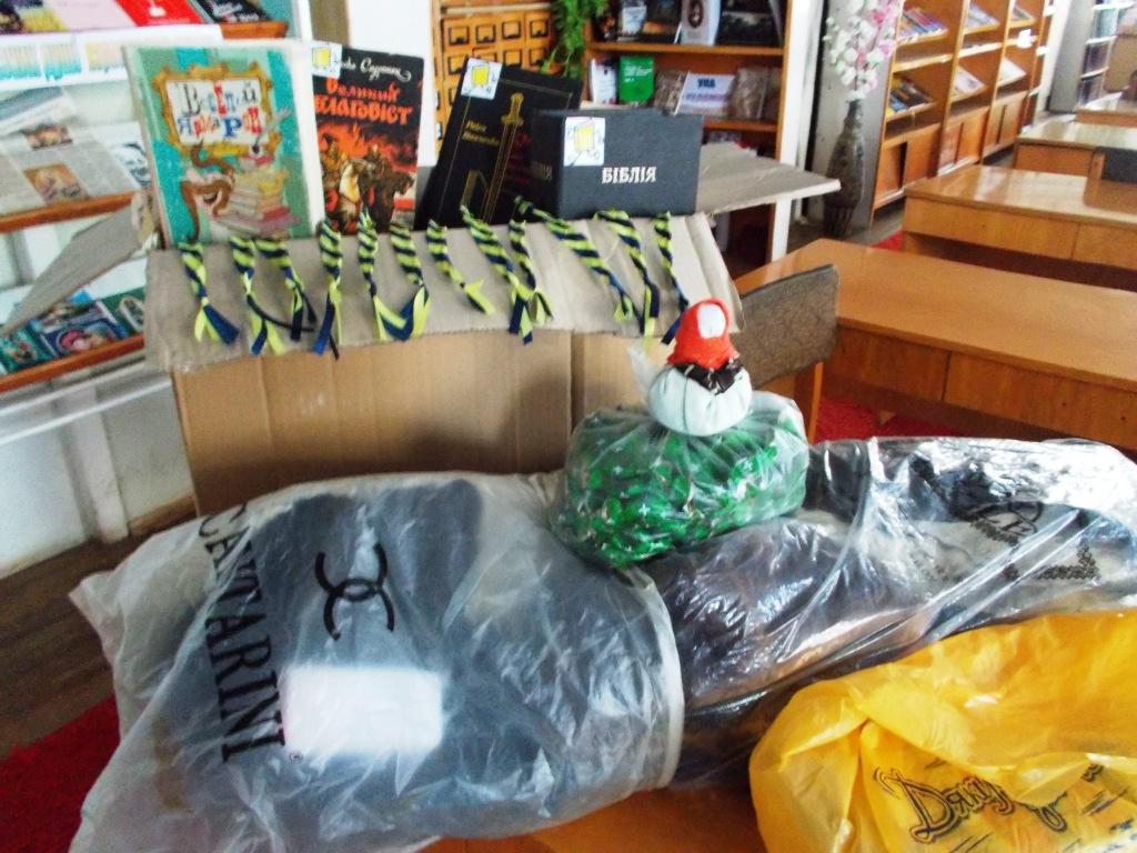 Колектив Трускавецької МЦБС крім книг зібрав хлопцям передачу, як вони просили: декілька блоків сигарет, а для тих, хто не палить, цукерки. І ще зробили із синьо-жовтих стрічок книжкові закладки, та оберіг – ляльку-травничку. Голова тієї ляльки зроблена з засушених пелюсток чорнобривців, а тулуб із запашних сушених літніх трав. Такий оберіг завжди буде пахнути домашнім теплом, добром і буде зігрівати душі наших героїв в холодному бліндажі.