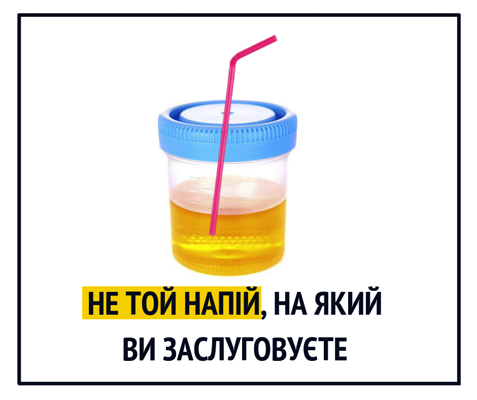 «Єдиний рекомендований спосіб поводження з сечею – це позбутись її в туалеті», пише Уляна Супрун. Ну що ж, так чинять і без рекомендацій міністра 98-99% всіх мешканців України. Так навіщо було потрібно і кому було потрібно це стрясання повітря? З ілюстрацією жовтої сечі в банці з синьою (!) кришечкою.