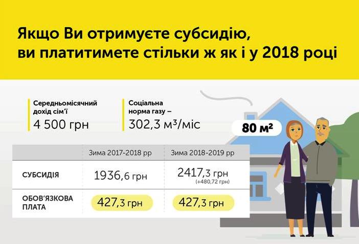 В межах соціальної норми субсидіанти не будуть платити більше, ніж минулоріч. Субсидія залежить від двох факторів – від розміру тарифу та від доходів громадян. Якщо доходи громадян не змінюються, а тариф зростає, то сума коштів, яку людина сплачує за опалення, не змінюється, а зростання тарифу компенсується збільшенням субсидії. Тобто сума, яку сплачує держава за людину, зростає пропорційно зростанню тарифів, а для людини залишається без змін.