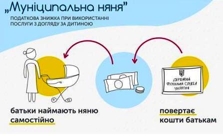 З 1 січня 2019 року запроваджується проект «Муніципальна няня», який дозволить батькам зменшити витрати на послуги няні для дитини. Держава відшкодовуватиме батькам послуги няні, що доглядає за дитиною до 3-х років, через надання податкової знижки. Розмір відшкодування – один прожитковий мінімум для дітей віком до 6 років (станом на 1.01.2018 це 1492 грн.) – за кожний місяць роботи няні. Батьки заключають офіційний договір з нянею, а держава повертатиме батькам гроші за її послуги.