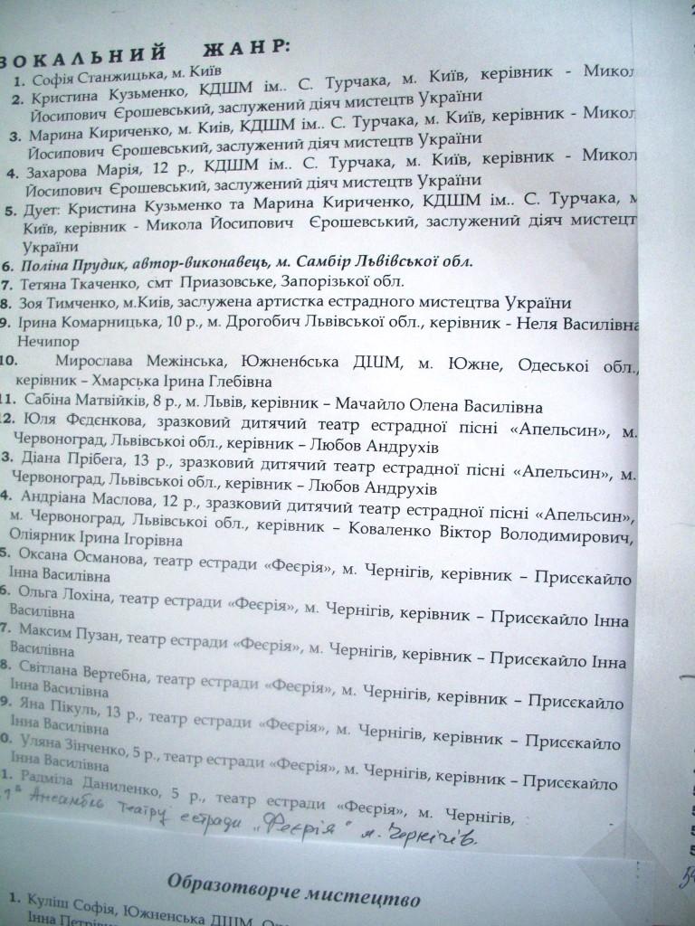 Але не тільки виступи зірок української естради припали до душі глядачам. Бурхливими оплесками проводжали зі сцени юного Миколу Загродського з Херсона, який віртуозно виконав «Чардаш» Монті, а також поважного віку черкащанина, який «любить палити дрова» та рокову виконавицю з Чернігова Оксану Османову (пісня «Поліна»).