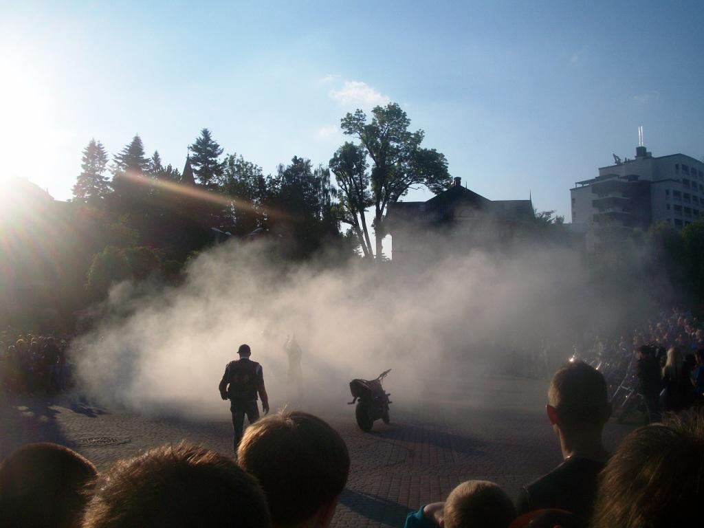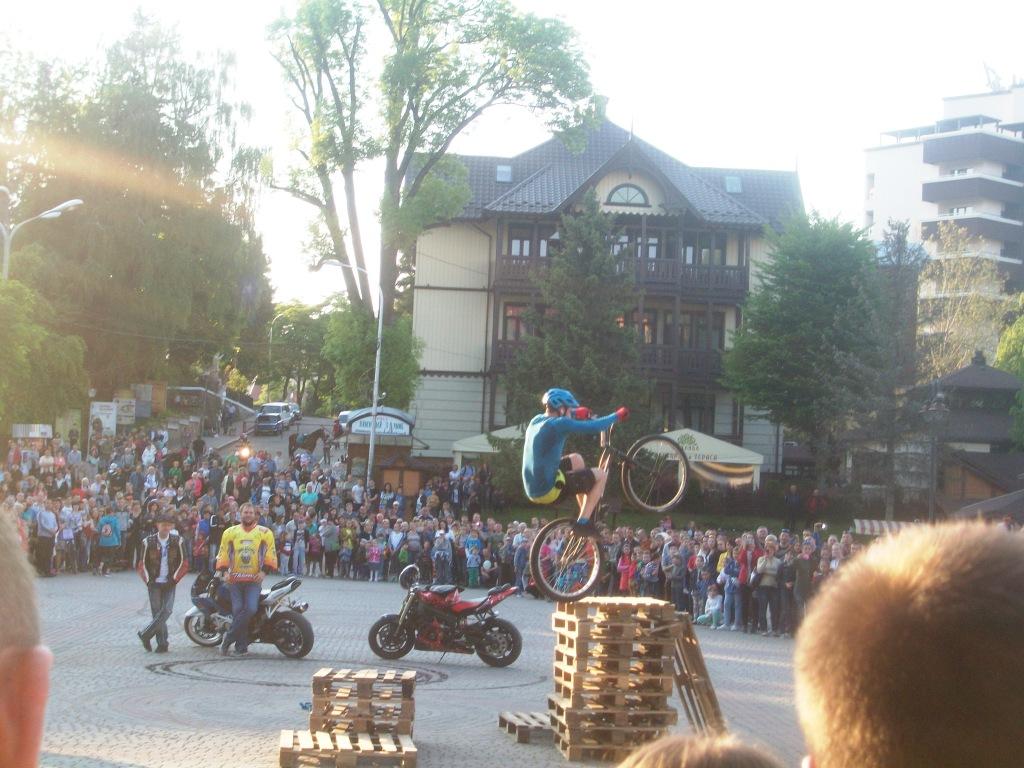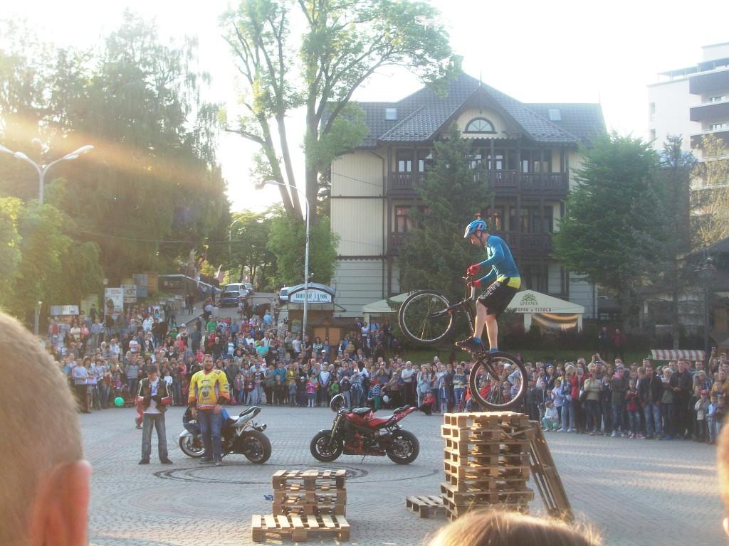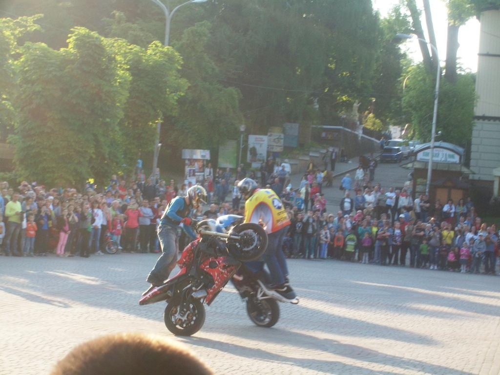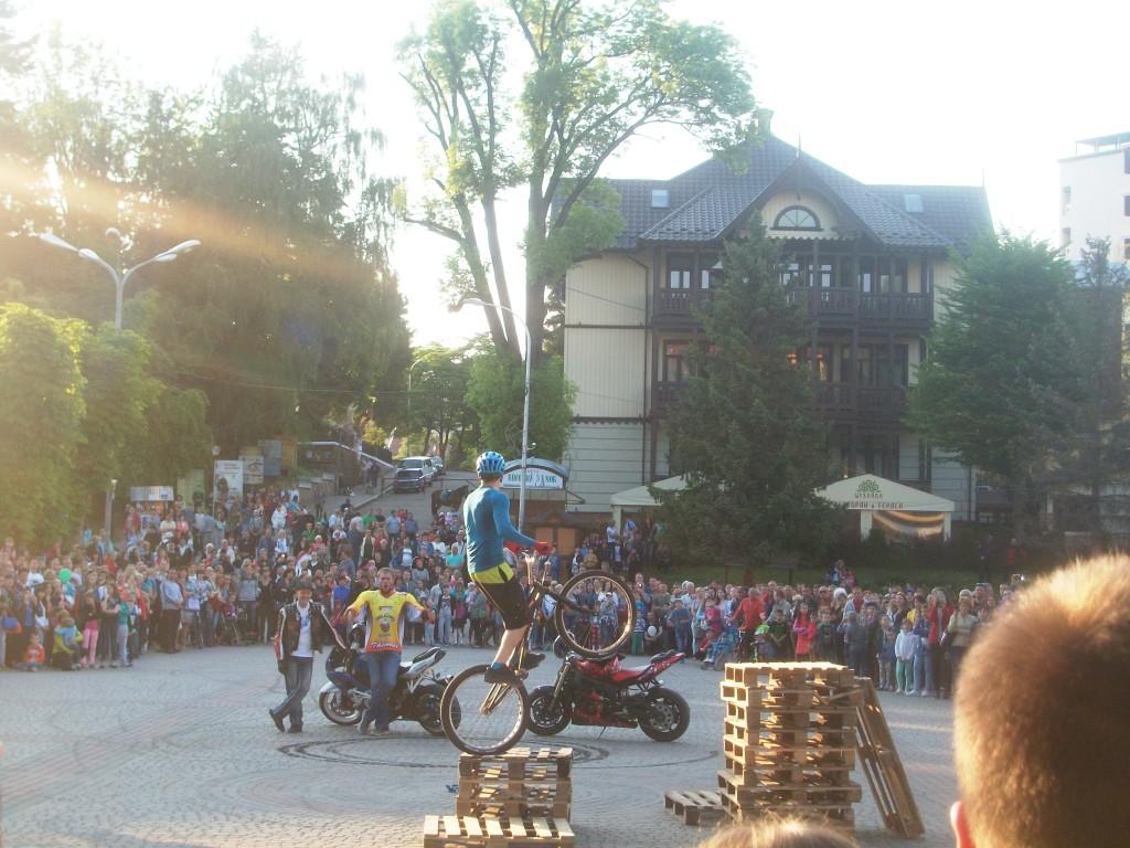 Урочисте відкриття фестивалю «Трускавецька фієста – санаторій «Карпати»-2016» відбулося в суботу ввечері. Передувало йому грандіозне байк-шоу. Дрогобицькі байкери в`їхали на центральну площу міста і своїми «залізними конями» створили на ній обмежувальне коло. В цьому колі два каскадери з Києва здійснили показові виступи, які викликали справжнє захоплення та бурю емоцій. І дійсно, було на що подивитися. «Осідлавши» байк вагою в 200-300 кг, київські каскадери з клубу «Скіфські воїни» виконували ризиковані трюки: їзда на одному колесі, їзда без участі рук або ніг, поєдинок, різкі повороти, фігурні композиції тощо. Кілька трюків було показано і на велосипедах – «перестрибування» через живу людину, виїзд на двометрову висоту, інші видовищні композиції. Гучними оплесками та вигуками «Браво!» проводжали глядачі байкерів, а в цей час проходили показові виступи з хортингу та акройоги.
