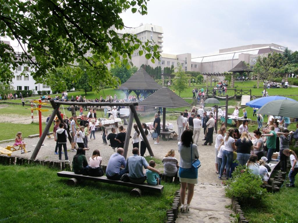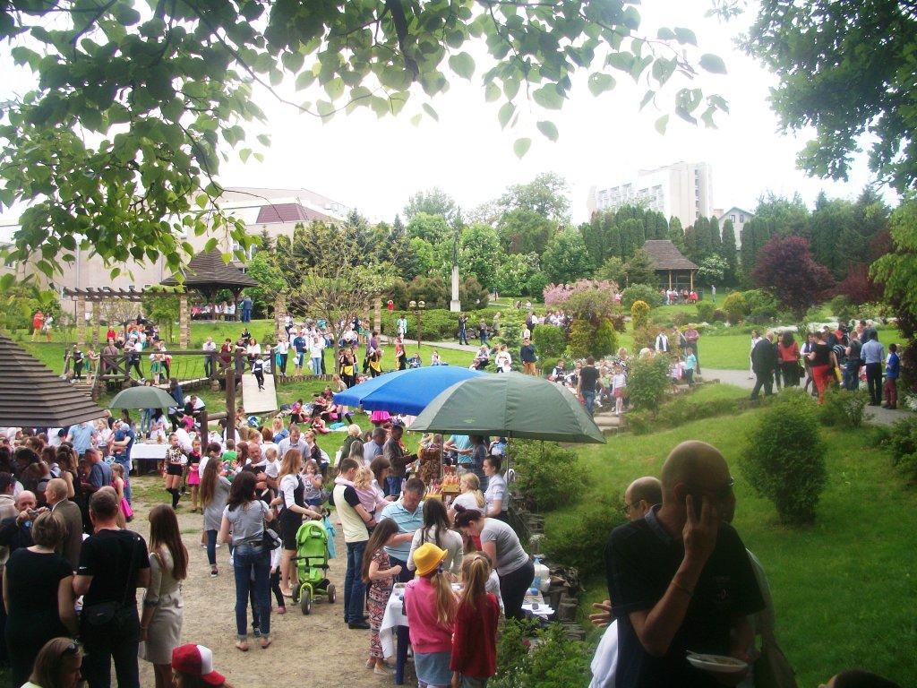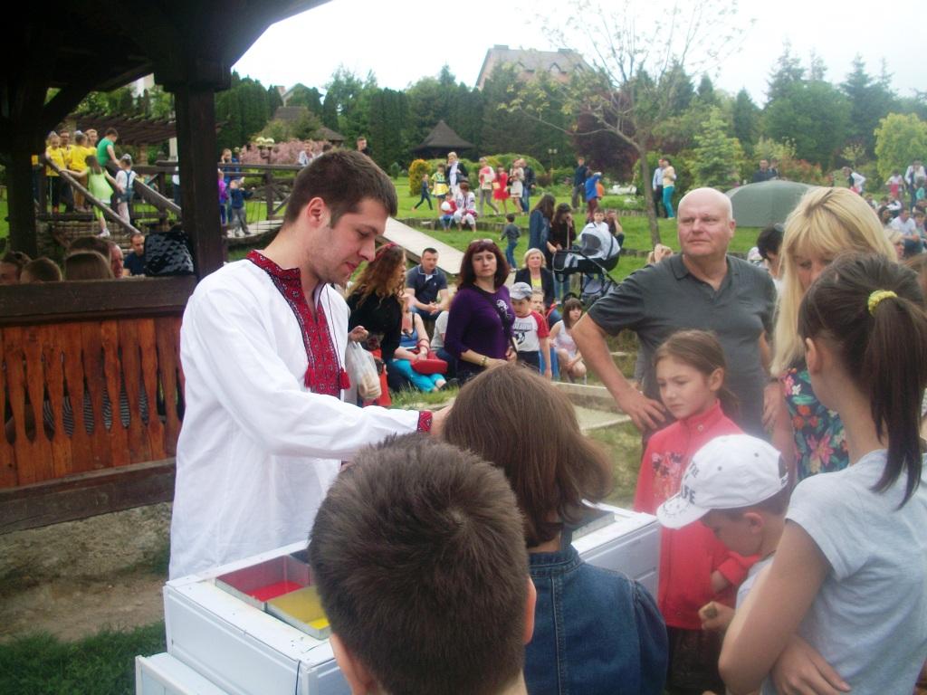 Не менш видовищним був фестиваль і другого дня. В неділю, 22 травня, всі заходи відбувалися в «Карпатах». Прослуховування тривали до 15.30, після чого журі зібралося за закритими дверима, щоб винести остаточний вердикт. А в цей час в ландшафтному парку «Підгір`я» біля оздоровниці було яскраво, гамірно та весело. Кухарі та воїни АТО готували куліш, діти малювали малюнки для українських воїнів, проходили майстер-класи та ярмарок. Ті, хто вперше побував у парку «Підгір`я», а це зокрема відпочивальники з деяких інших трускавецьких санаторіїв, дивувалися, наскільки тут гарно, роздивлялися екзотичні кущі та дерева, фотографувалися на фоні тварин (на території є міні-зоопарк з оленями, рисями, амурським леопардом, фазанами та іншими тваринами і птахами). Поруч продавалися смаколики, а також сувеніри на згадку про фестивальне дійство.