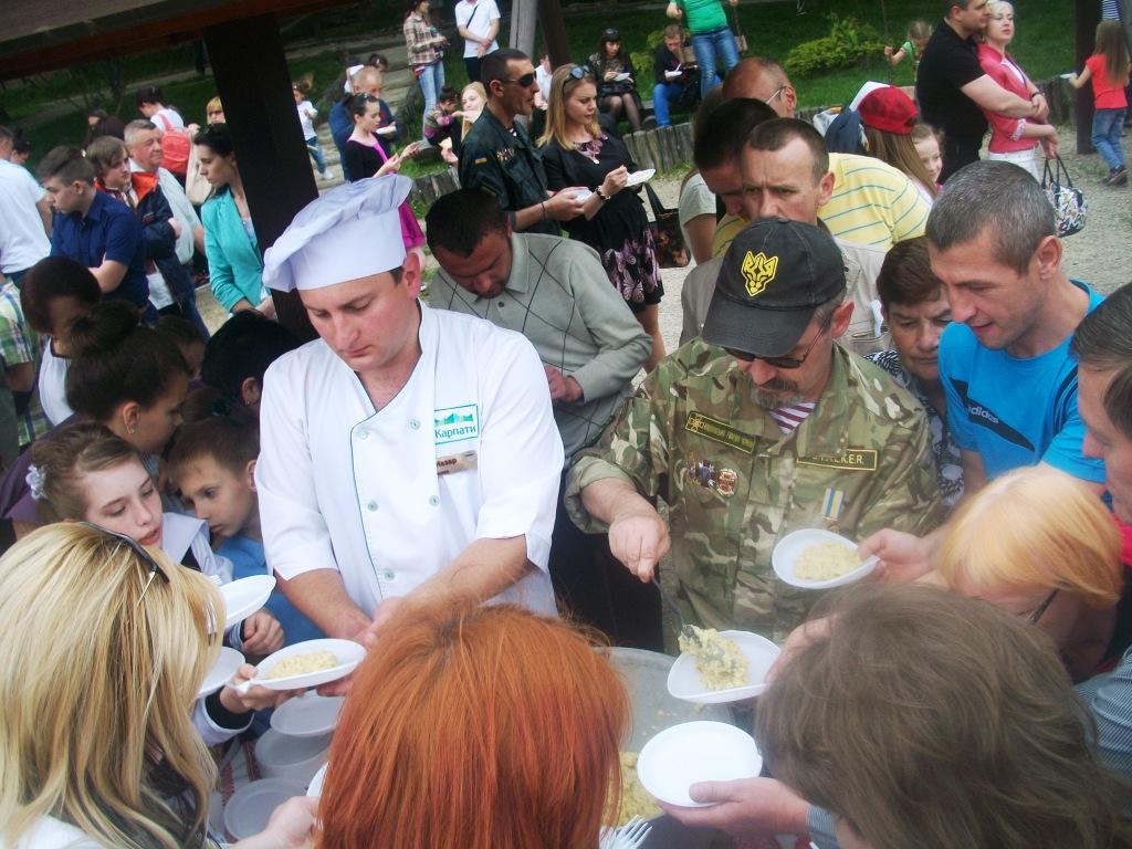 Смачнющого кулешу ледве вистачило всім бажаючим, адже кожен хотів попробувати цей кулінарний шедевр, в який кухарі «Карпат» та воїни АТО з ГО «Меч Арея» вклали душу. Недарма кажуть, що якщо готують чоловіки – це мусить бути смачно!