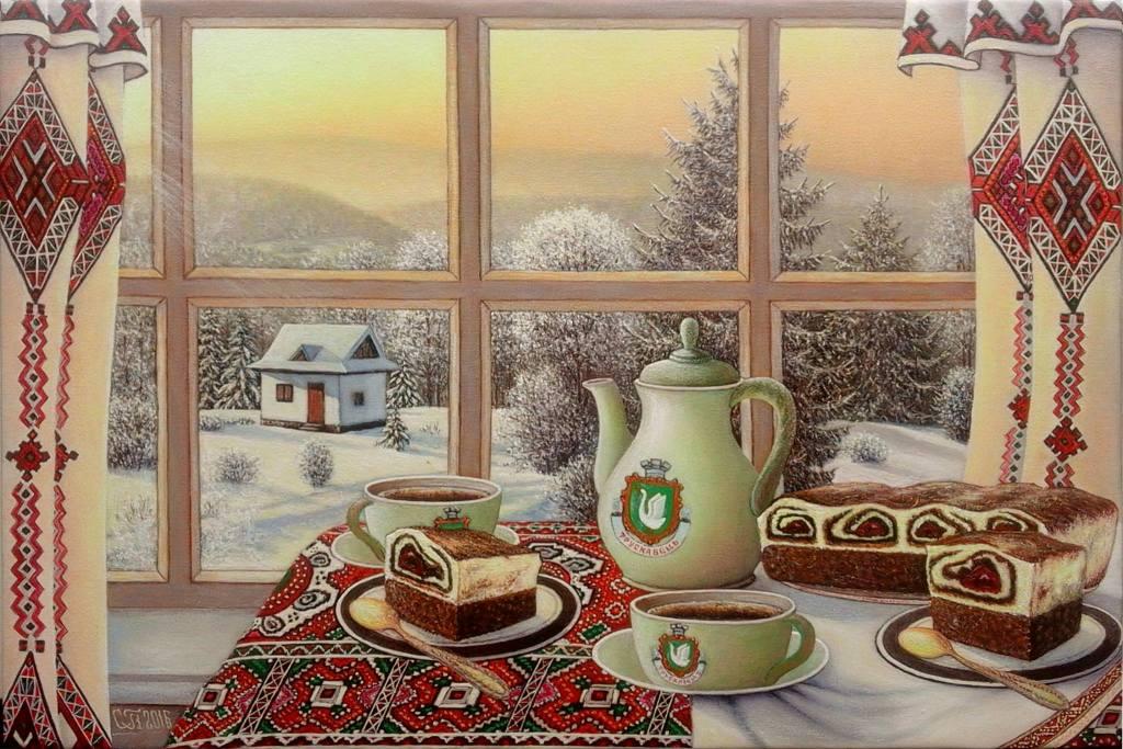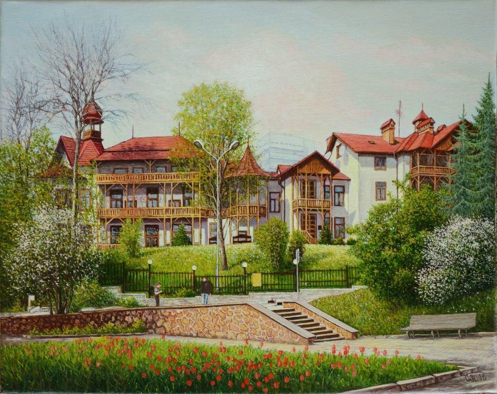 Ось хоча б кілька штрихів. Надворі зима, а в світлій теплій оселі з вишитими шторами на столі парує чайник з «трускавецькою» гускою. Ікона святого отця Миколая на фоні трускавецької церкви. В парку. Скрипка на підвіконнику, а за вікном – прекрасний вид на розмірене курортне життя. Бричка везе відпочивальників тінистою алейкою в напрямку музею. Вілла «Ґопляна» та вілла «Старий Відень», «Набі»…