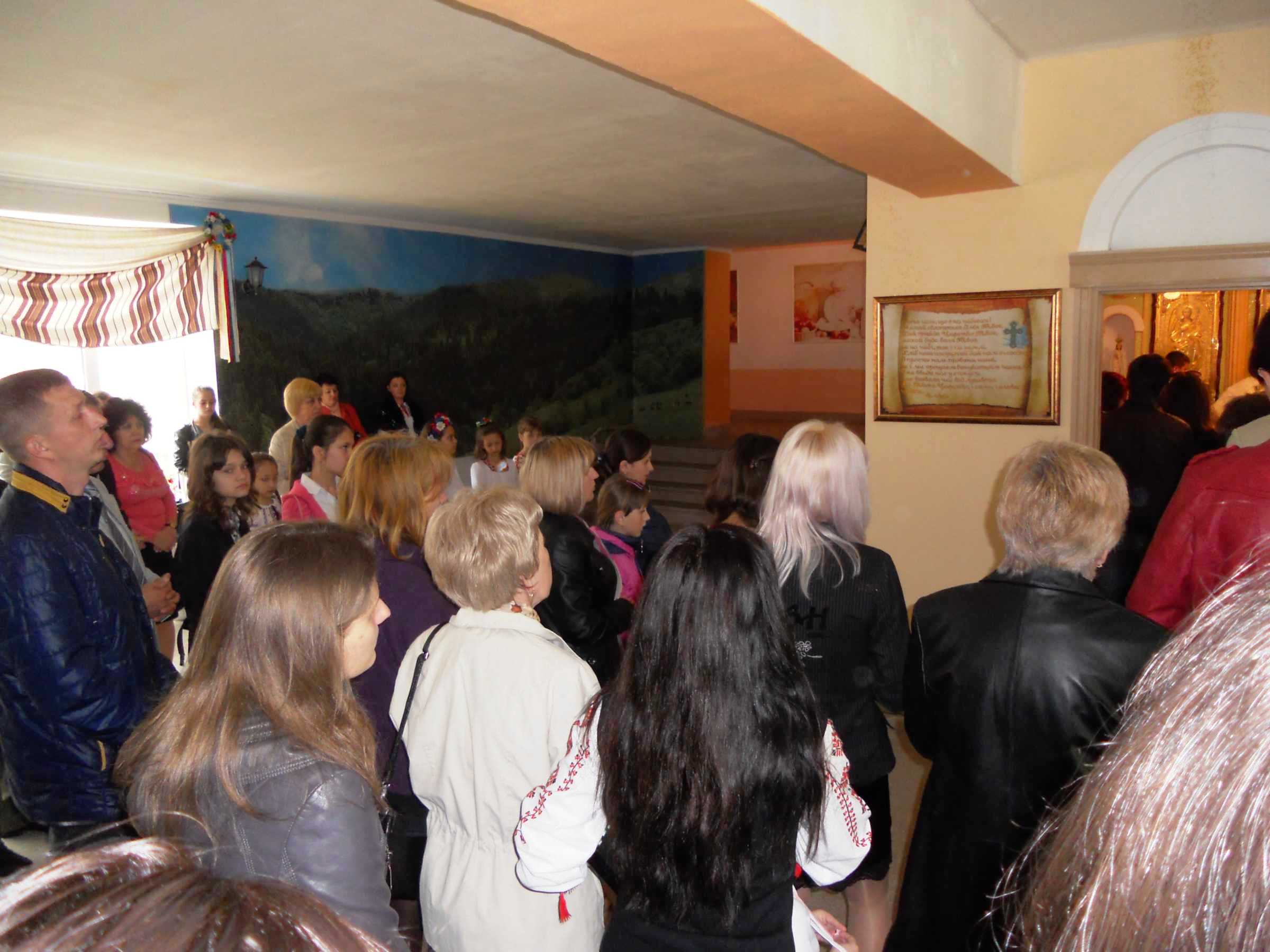 Чин освячення каплички здійснив отець-декан Петро Івасівка. Настоятель парафії св. Миколая розповів присутнім історію життя слов`янських просвітителів Кирила та Методія, які будуть покровителями учнів школи-гімназії. На відкриття були запрошені міський голова Трускавця Р. Козир, заступник міського голови Ігор Паньків, завідувач відділу освіти Михайло Шубак, сестри-служебниці, батьки та учні.
