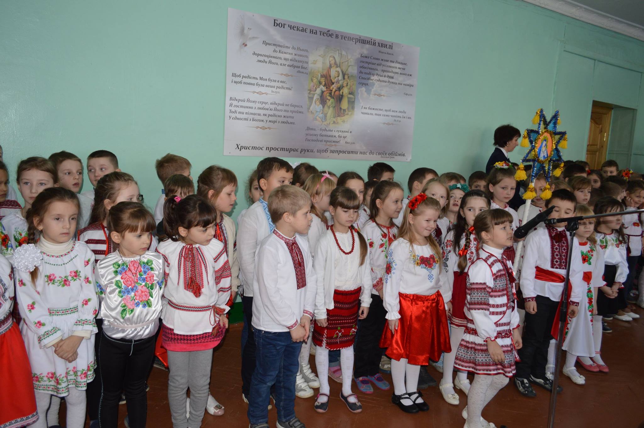На завершення фестивалю колядок всі разом заспівали пісню «Україна колядує», змінюючи рефрен на слова «Перша школа колядує, прославляючи Христа».