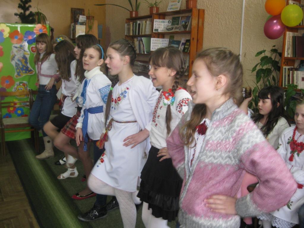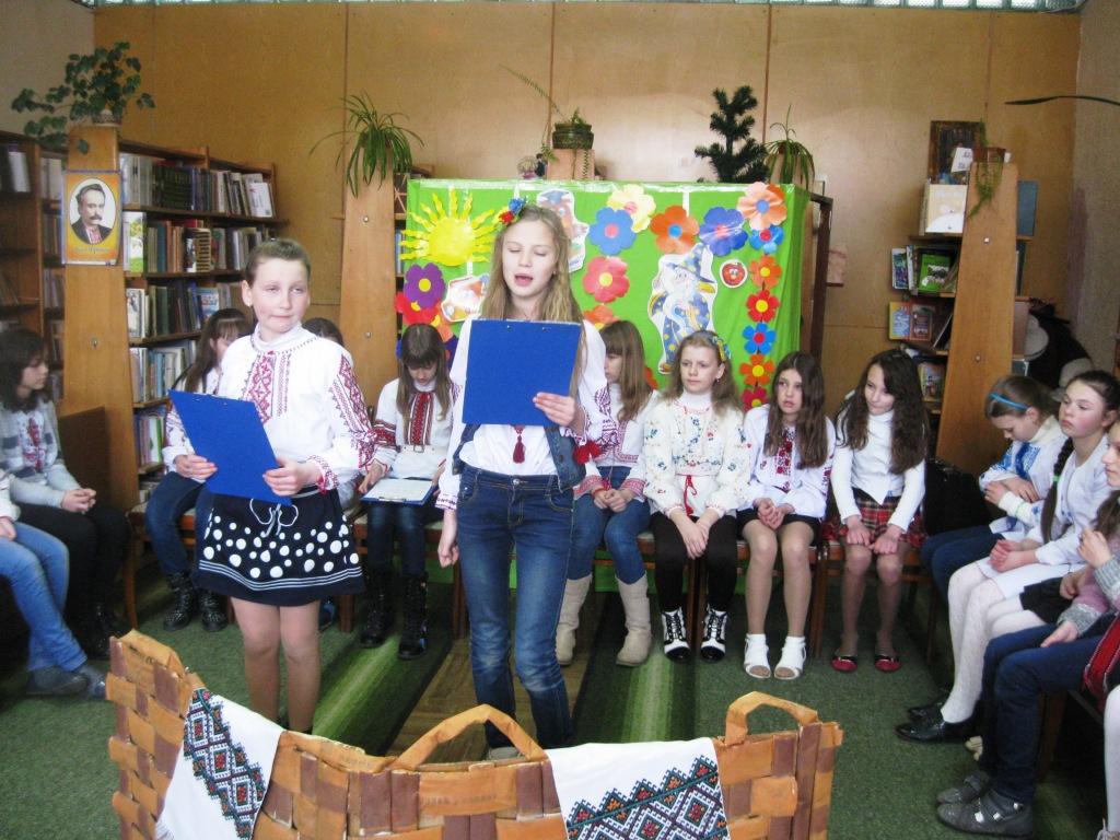 Маленькі артисти, учні 4-А класу, здивували і порадували присутніх своїм артистизмом, захоплюючи та майстерно зігравши виставу “Великодній кошик”. Діти з любов’ю зачитували вірші про Великдень, виконували пісні і, співаючи гаївки, весело кружляли у танцях під музичний супровід бібліотекаря Лесі Цісінської. Гаївки були настільки цікавими, що глядачі вслухались в їхній зміст, а батьки пишались своїми обдарованими дітьми і раділи тому, що народні традиції відроджуються та продовжуються підростаючим поколінням. В кінці свята всі разом заспівали пісню “Христос воскрес”.