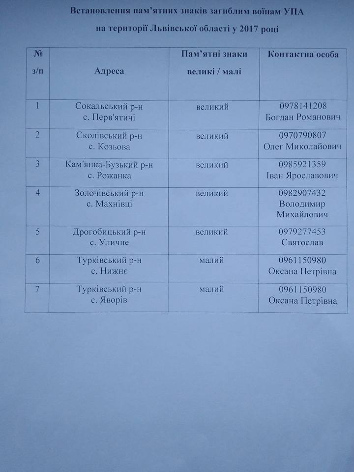 Перекидку коштів у сумі 300 тис. грн з програми сприяння розвитку інформаційного простору на встановлення хрестів полеглим воякам УПА було здійснено лише 20 жовтня. Пам’ятні знаки в честь воїнів УПА в семи селах Львівщини мають бути встановлені до кінця поточного року.