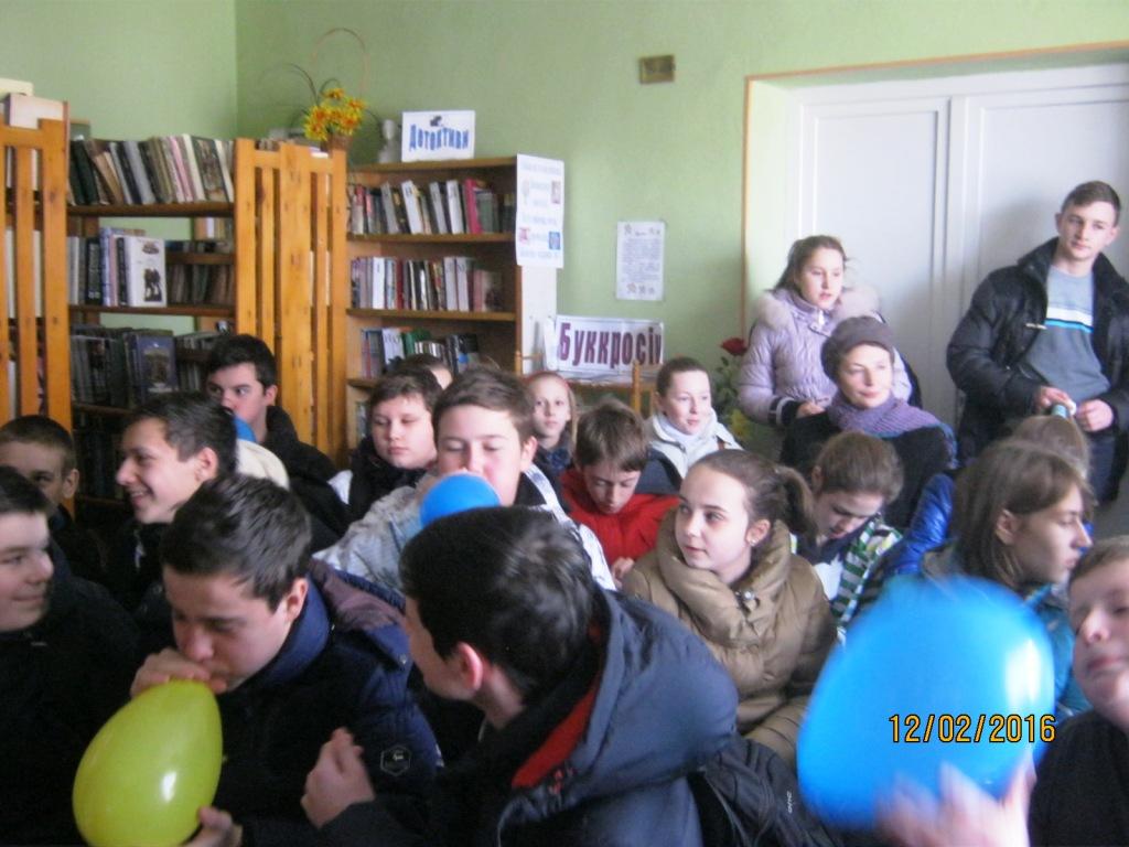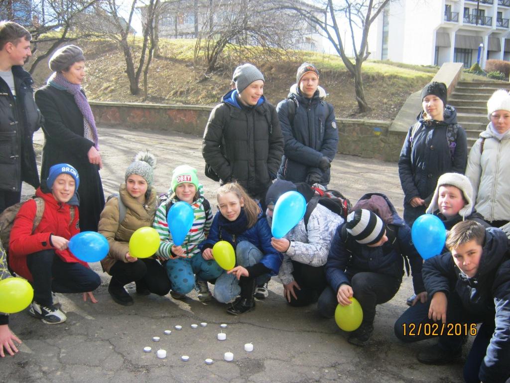 На початку заходу учні 8-го класу середньої школи №1 дізнались, звідки прийшло до нас це свято і як святкують його в інших країнах світу. Старшокласники з захопленням брали участь у вікторині, активні учасники якої отримали символічні призи, повітряні кульки синього та жовтого кольору.