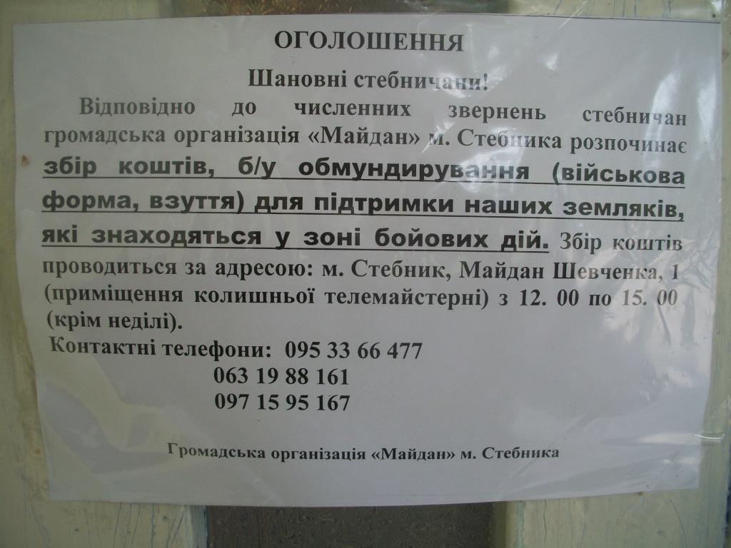 Друга новина – Стебник бере активну участь у зборі допомоги для наших українських військових, які воюють в зоні АТО. Гроші, продукти, речі, які збирає міський штаб, відправляють на Схід. Василь Пецюх анонсує свою зустріч з підприємцями, яка повинна відбутися найближчим часом власне з цього питання – активізації допомоги нашим збройним силам, щоб прискорити мить перемоги над ворогом.