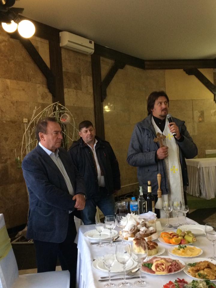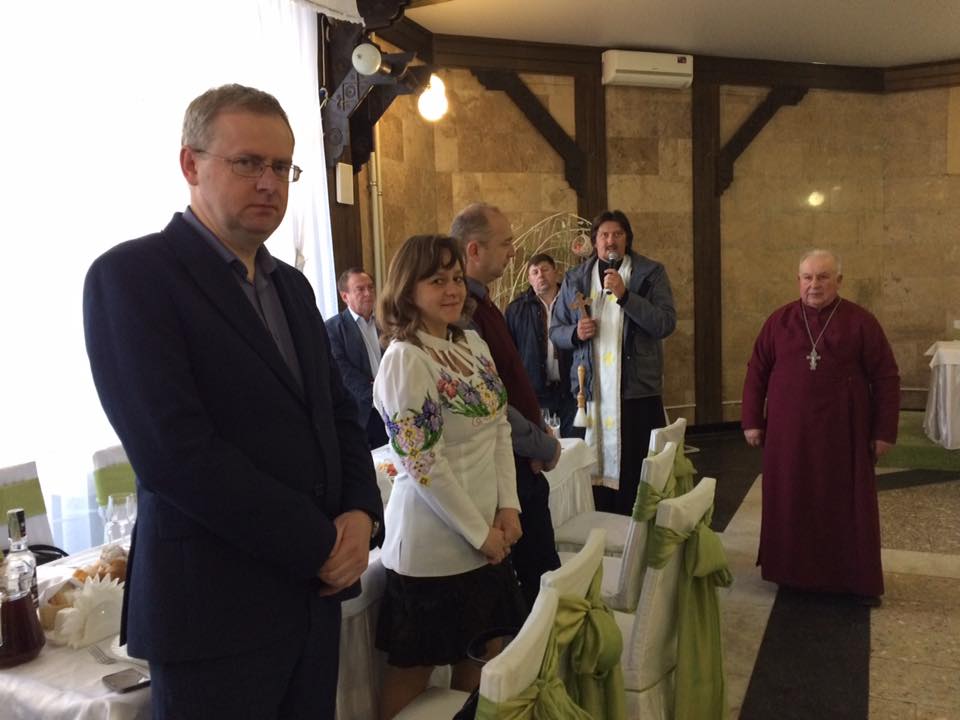 Великодню трапезу поблагословили настоятель трускавецької парафії Покрови Пресвятої Богородиці (УГКЦ) о. Володимир Бондарчук та настоятель стебницької парафії Архистратига Михаїла митрофорний протоієрей о. Михайло Комарницький (УПЦ КП).