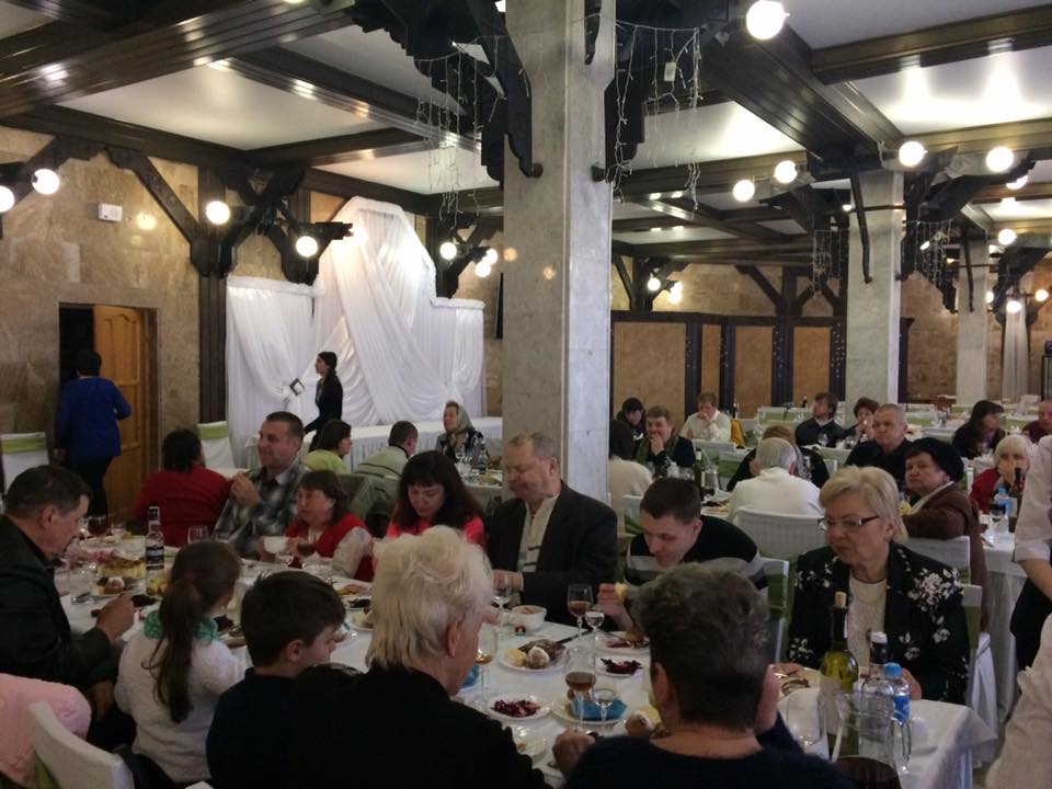 Столи вгиналися від наїдків, тут були різноманітні салати, закуски, гарячі страви, фрукти, солодощі. Чисто як у біблійній притчі, коли добрий господар запросив на гостину всіх потребуючих. Та все ж не їжа є головною, а увага і турбота. Живемо в часи, коли, Богу дякувати, голоду немає в Україні і кожен на Великодні свята намагається підготуватися належним чином. Інше діло, що не завше є можливість розділити з кимось радість Пасхальних свят через самотність, хворобу, скромність. Тому великодня зустріч в «Карпатах» є нагодою для таких людей не тільки гарно попоїсти, але й поспілкуватися, поділитися думками, враженнями, поглядами, розвіятися, відчути себе повноцінним і, головне, потрібним для суспільства, для інших людей, відчути себе цінним в очах Господа.