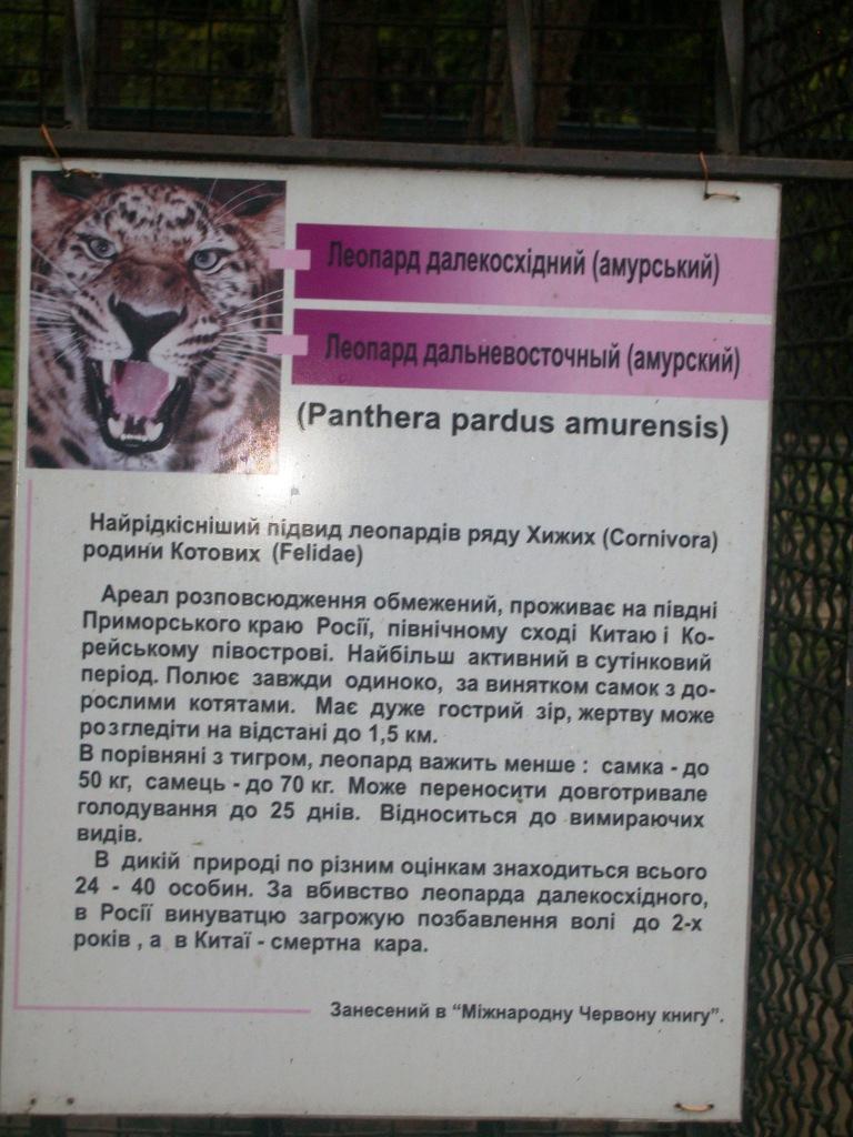 В парку «Підгір`я» маємо цікавого представника родини котячих – це далекосхідний амурський леопард. Цей хижак може розвивати швидкість до 120 км/год. Для прикладу, людина біжить зі швидкістю 10 км/год. Леопард робить два кроки і з місця летить передніми лапами. Підстрибнувши на метр, він долає наступні три метри. До речі, за вбивство далекосхідного леопарда в Росії дають два роки тюрми, а в Китаї за це передбачена смертна кара. Цих тварин у світі залишилося зовсім мало, вони занесені в Червону книгу.