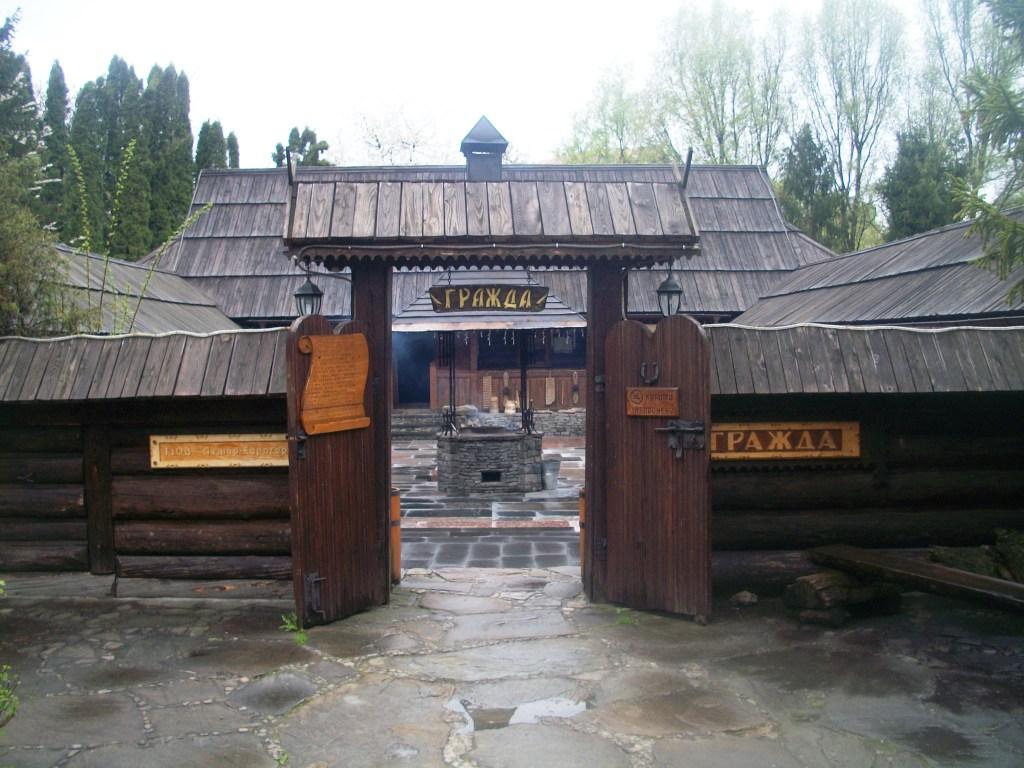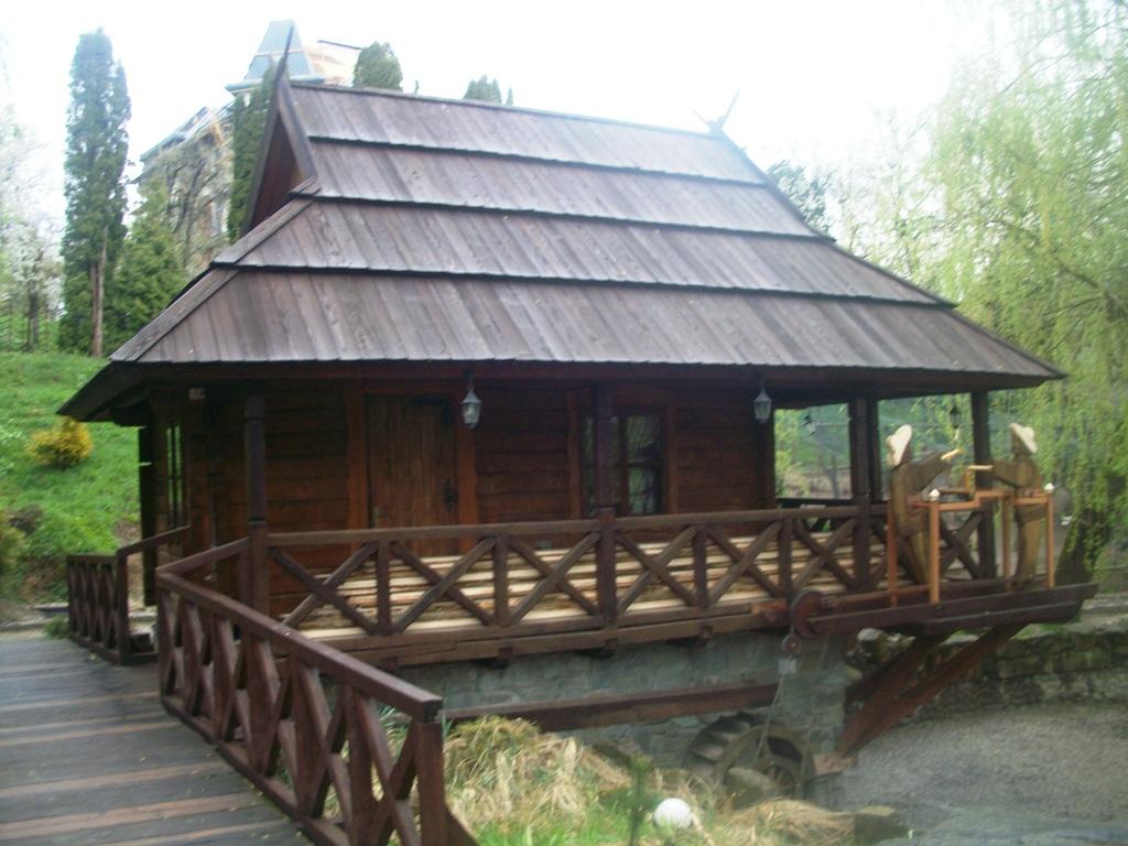 У північній частині парку в оточенні ялин і смерек розташоване етно-кафе «Ґражда», збудоване в стилі народної дерев’яної архітектури Карпат. Інтер`єри кафе оздоблені різьбою по дереву, гуцульською керамікою, барвистими килимами та ліжниками. На терасах, що опускаються до каскаду декоративних ставків, розміщені дерев’яні альтанки, столи та лавки.