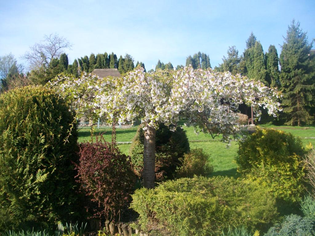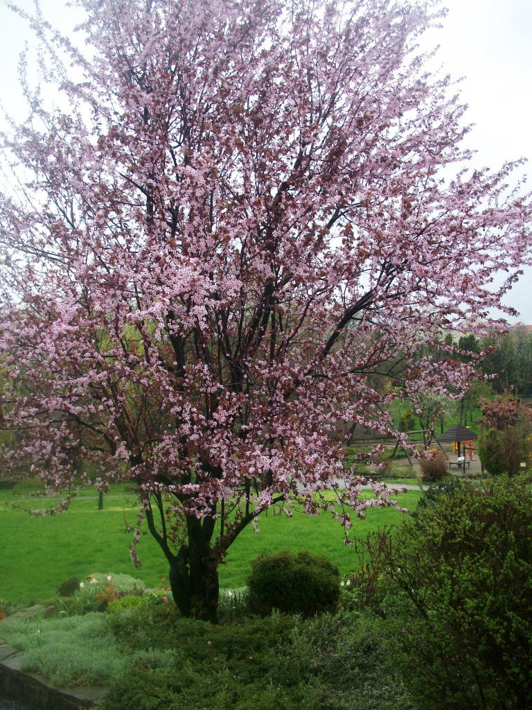 Після далекосхідної сливи починає цвісти сакура, японська вишня. Цвітіння сакури означає, що холодів вже не буде. Бачите, на неї вже починають сідати бджоли. Сакура не плодоносить. Колись цигани вкрали сакуру, яку везли до цісаря Франца-Йосифа і посадили її в Ужгороді, де зараз її дуже багато і Ужгород потопає в цвіті сакури.
