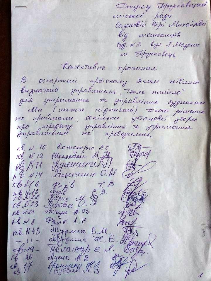 Мешканці 20-ти квартир будинку Мазепи, 2 (підписи)