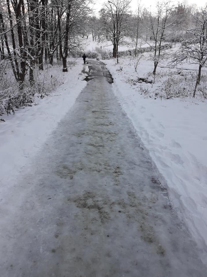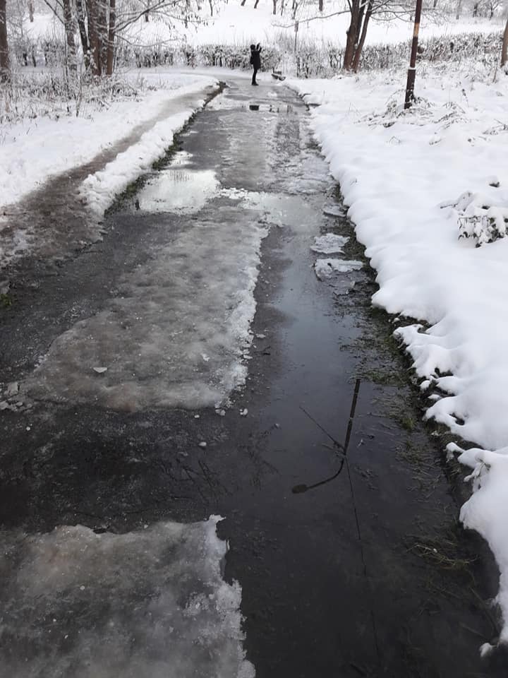 Зі сторони санаторію “Південний” та суміжного військового санаторію вниз по курортному парку тече вода, котра при мінусовій температурі перетворюється в суцільний лід. Про це «Трускавецький вісник» повідомили відпочивальники, котрі вважають неподобством, що в курортному місті створюються такі незручності для людей. Мало того що від води намокає взуття, так ще й лід створює перешкоди в ходінні, адже дуже легко послизнутися та впасти, а це може призвести до пошкоджень тіла, кажуть відпочивальники. Вони просять місцеву владу, керівництво водоканалу, прилеглих санаторіїв та КП «Парк курортний» звернути увагу на дану проблему та по можливості вирішити її якомога швидше.