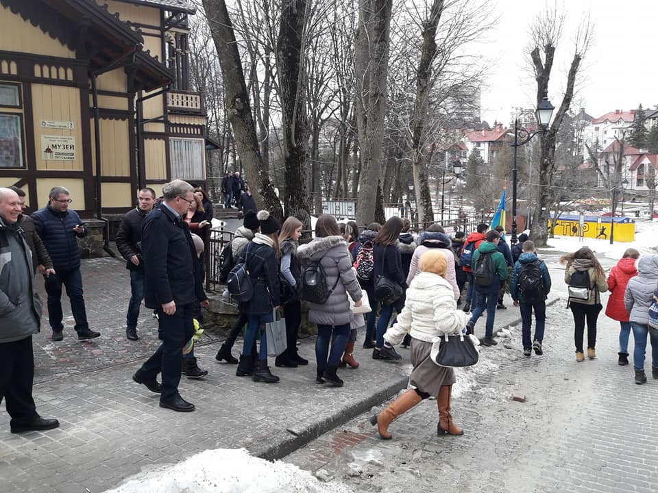 Спочатку в музеї історії міста-курорту школярі та всі бажаючі мали можливість послухати короткий виклад про життя Романа Різняка. До присутніх звернулися міський голова Андрій Кульчинський, директор музею Галина Коваль, вчитель історії Тетяна Губерська, депутат ТМР Олег Карпин. Було чітко означено віхи життєвого шляху Романа Макомацького, висвітлено знані та незнані сторінки з його біографії. Олег Карпин розповів про приготування до зйомок фільму про нашого земляка, над сценарієм до якого трудилися і трудяться Тарас Метик та Борис Савченко. А учениця Аліна Лепак виступила з композицією, присвяченою не лише давнім героям Трускавця (Білас, Данилишин, Макомацький), але і героям сучасним (Шіхт, Шевчук, Гулик, Дідач).
