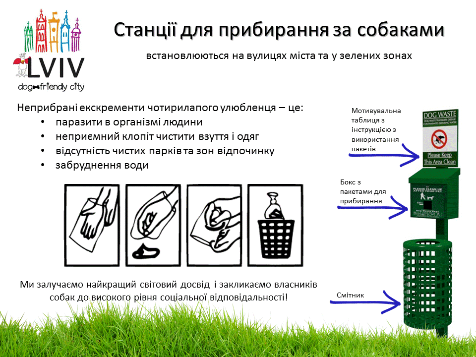 – На конкурс «Будуймо Еко-Україну разом» ми подали пропозицію по установці станцій для прибирання за собаками в якості соціального експерименту. Ми вважаємо, що питання прибирання за собаками на прогулянках є дуже гострим для соціуму, і саме через нього взаємини між власниками собак та іншими городянами дуже напружені. Невдоволення мешканців також переноситься на самих собак, що відбивається на загальному ставленні до собак. Також, дуже хвилює санітарно-гігієнічна сторона питання, про яку суспільство практично нічого не знає.
