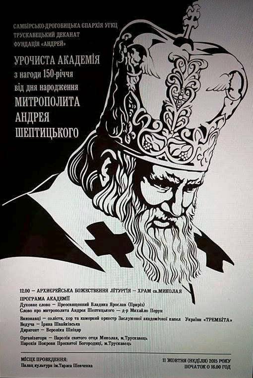 За кілька днів Трускавець відзначатиме 150-ліття від дня народження митрополита Андрея Шептицького. Людини, яка стала духовним наставником українського народу, яку нарекли «будівничим нації» та «князем української церкви». З нагоди річниці у неділю, 11 жовтня, відбудеться Божественна Літургія та урочиста академія за участю хору та камерного оркестру «Трембіта».