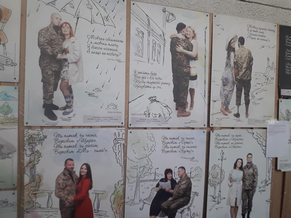 Дві години організатори виставки розповідали присутнім ці історії, а час летів, як на крилах. Тематично, блоками розміщені фото – по 12 (бо планувалося видавати календарі) чи по 25 (бо саме стільки областей України включно з Кримом). Один блок розповідає про легіонерів, котрі приїхали захищати Україну від агресії. Другий – про жінок на війні. Третій – про кохання. Четвертий присвячений матерям, котрі дочекалися чи не дочекалися своєї дитини з війни. П`ятий – «Я є!», про тих, хто повернувся.