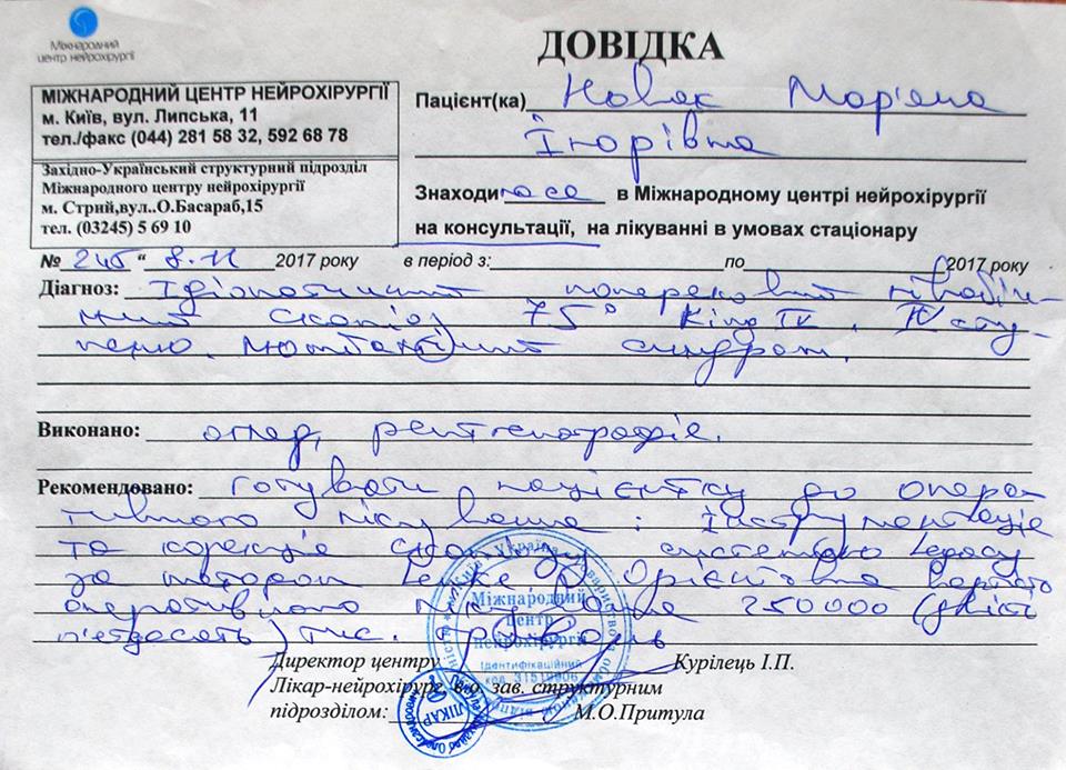 Кошти на операцію Мар’яни Новак можна перерахувати на рахунки у «Приватбанку»: у гривнях – № 5168 7573 2804 3056; у доларах – № 5168 7573 2804 3072; у євро – № 5168 7573 2804 3619. Мобільний телефон Ігоря Шептицького – 067 371 87 22.